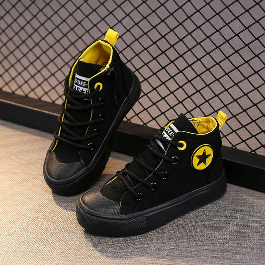 Children High-top Casual Canvas Shoes Boys Girl Zipper Flat Bottom Breathable Board Shoes Kid Cycling Sports Outdoor Board Shoes