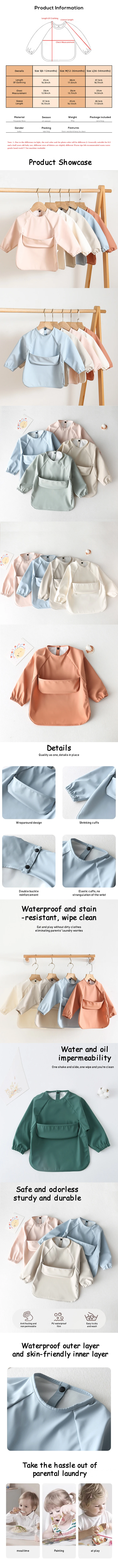 1pcs Solid Color Painting Smock Baby's Soft Waterproof Long Sleeve Art Smock Feeding Bib Apron for Kids Accessories