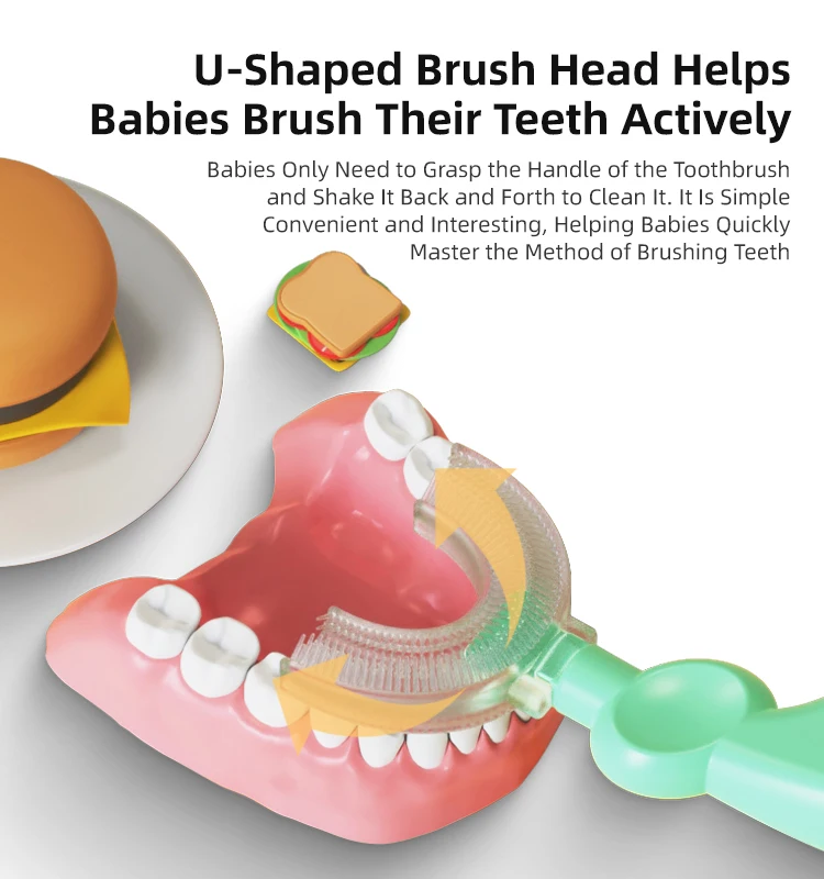 2-6 Years Baby 360 Degree U-shaped Oral Care Cleaning Silicone Soft Toothbrush Cartoon Cute Children's Toothbrush