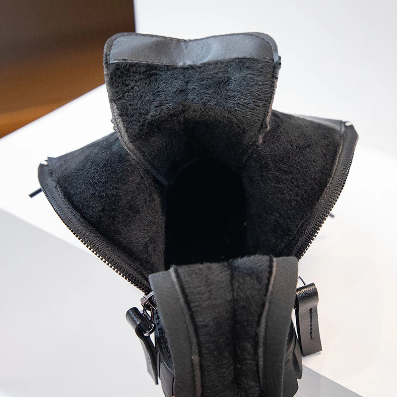 2023 Girls Boots Children Fashion Autumn Black Cool Simple Side Zipper Kids Shoes Princess Knight Boots for Catwalk Winter Cute