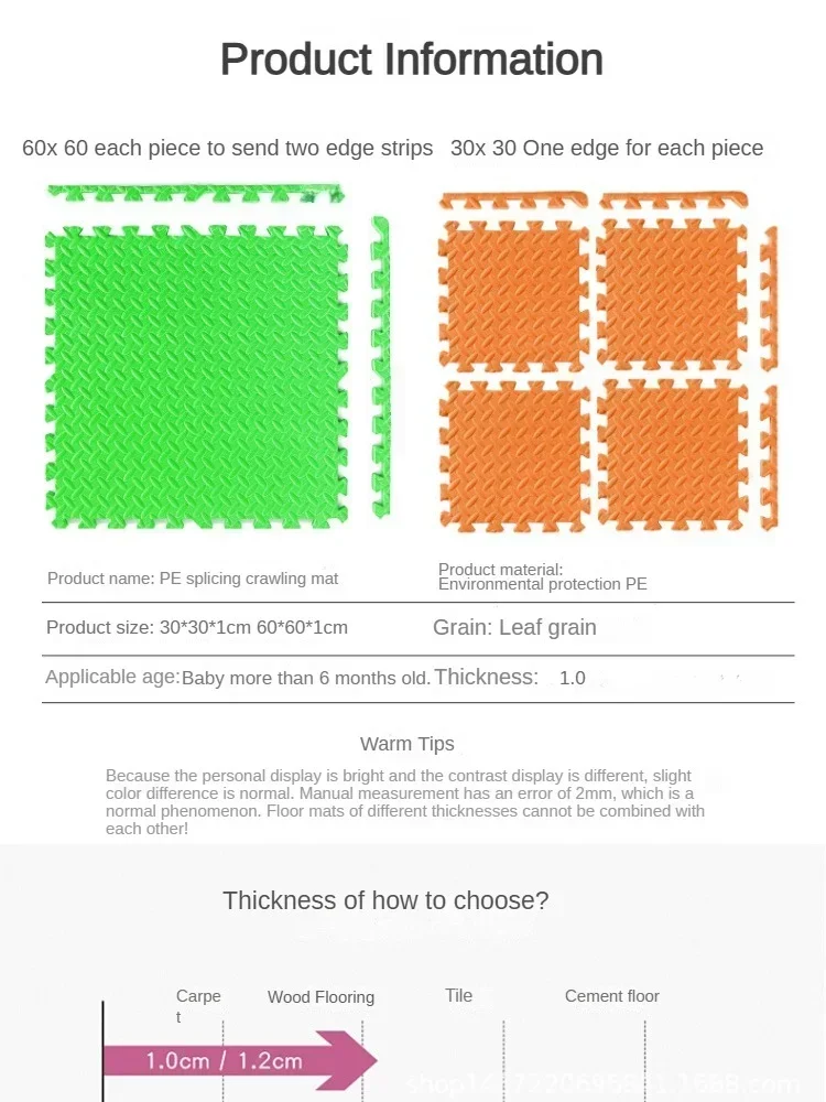 NOTE: Can puzzle with the pattern mats with size 30cm*30cm*1cm in our shop. Our products can't puzzle with other shops' mats.
