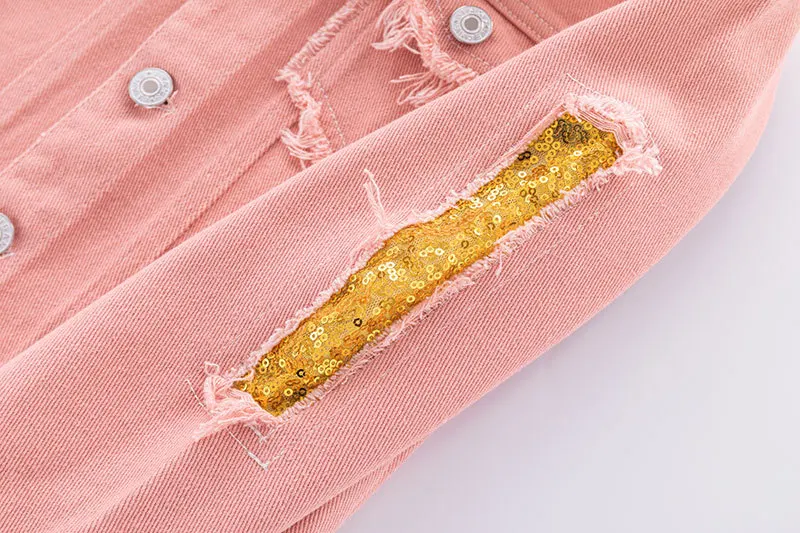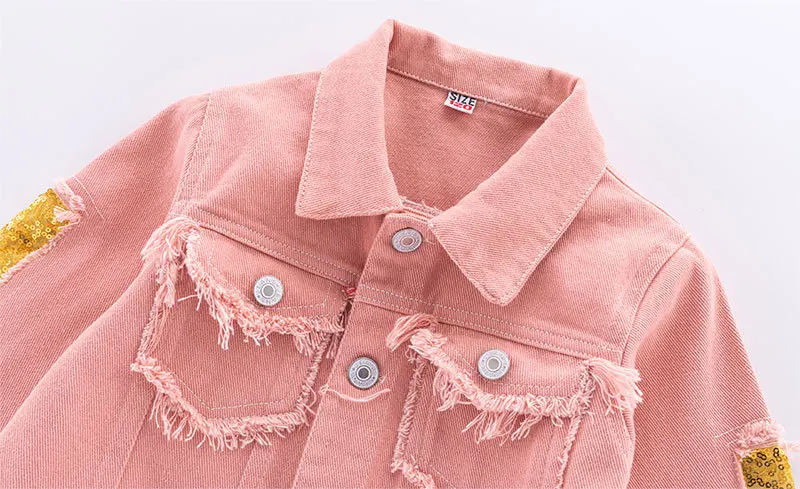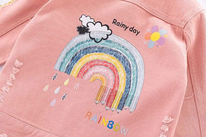 5-12 Years Teen Girls Denim Jacket New Fashion Pink Rainbow Sequins Jean Coat For Girl Spring Autumn Children Outerwear Clothing