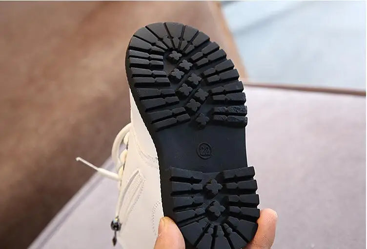 Autumn/Winter Kids' Leather Boots – Warm Plush, Waterproof, Non-Slip Fashion Boots for Boys and Girls (Sizes 21–30)