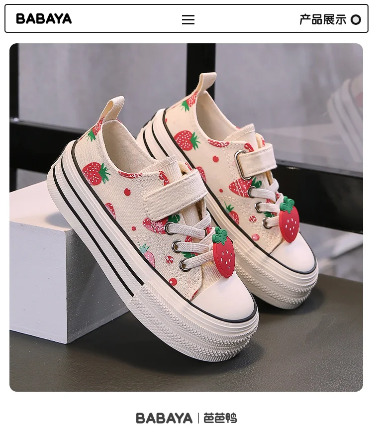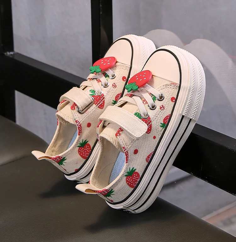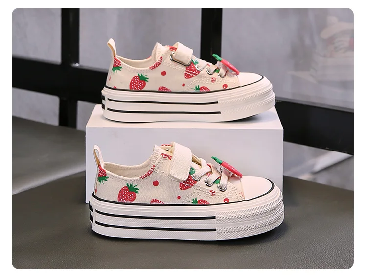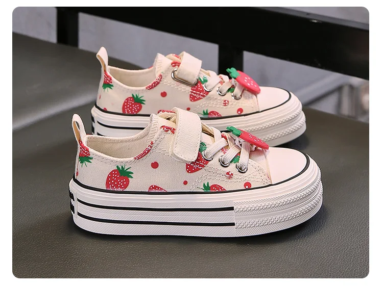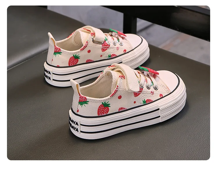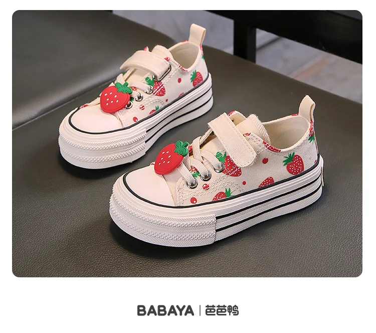 Babaya 2025 Autumn New Children's Canvas Shoes Girls Shoes breathable kids Board sneakers for girl Strawberry Princess Shoes