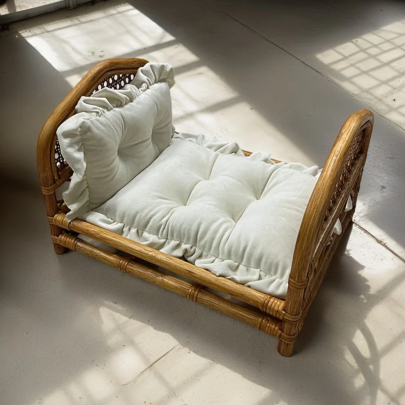 Baby Bed Newborn Photography Props Handmade Bed Baby Vintage Rattan Wooden Sofa Crib Photo Background Photo Studio Posing Props