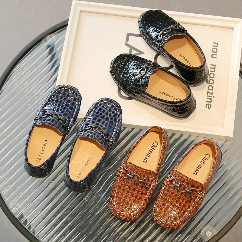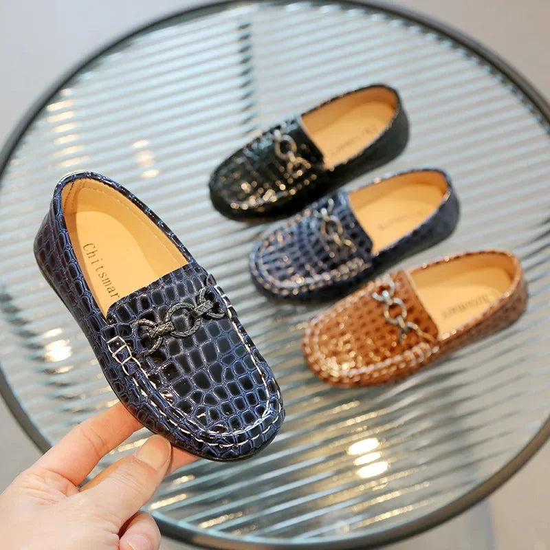 Baby Boys Leather Shoes Kids Fashion Casual Shoes Children's Flat Loafers Slip-on Moccasins Metal Buckles Classic Soft Vintage