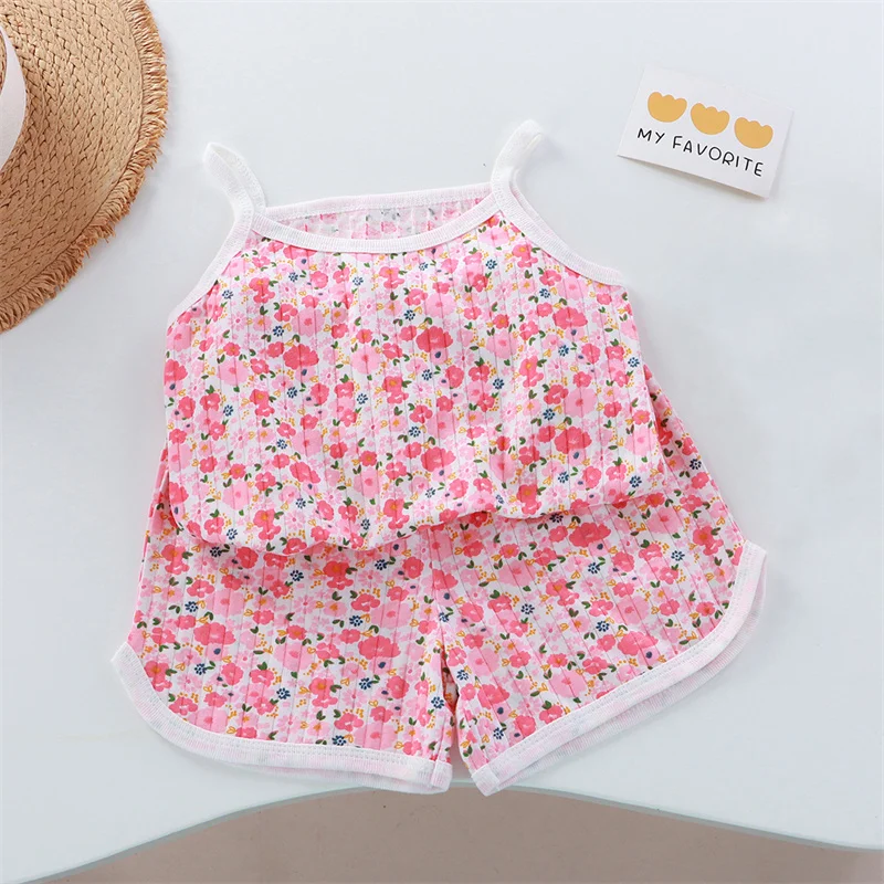Baby Clothes Sets Summer Toddler Girl Strap Suits Cotton Printing Baby Boy Tops Tee and Shorts Infant Tracksuit Newborn Sets