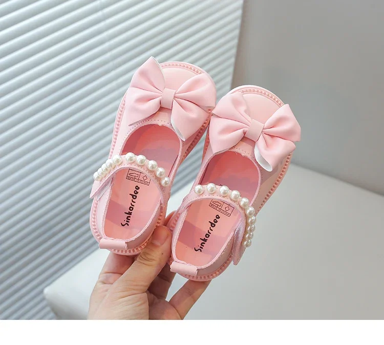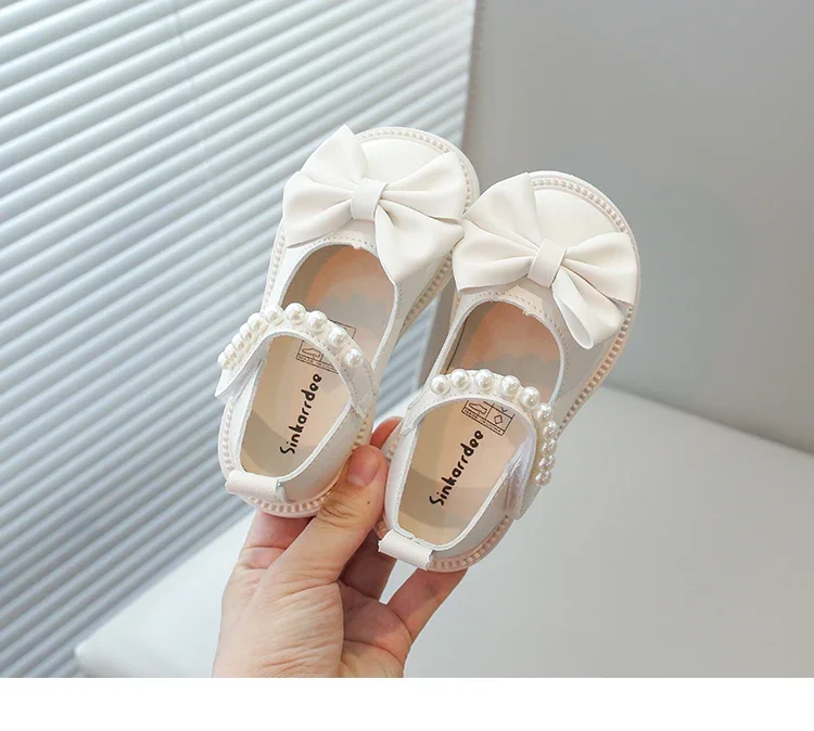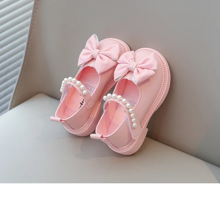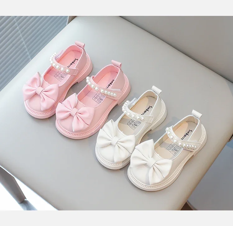 Baby Girls Casual Shoes Kids PU Leather Shoes with Bow-knot Sweet Cute Fashion Princess Children Wedding Dress Party Flats Soft