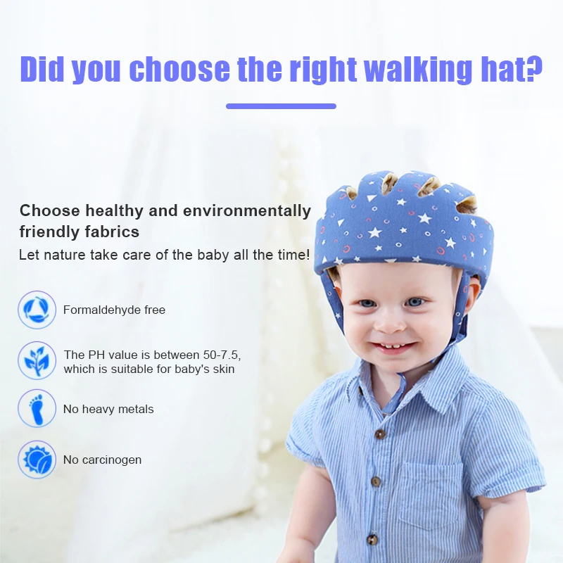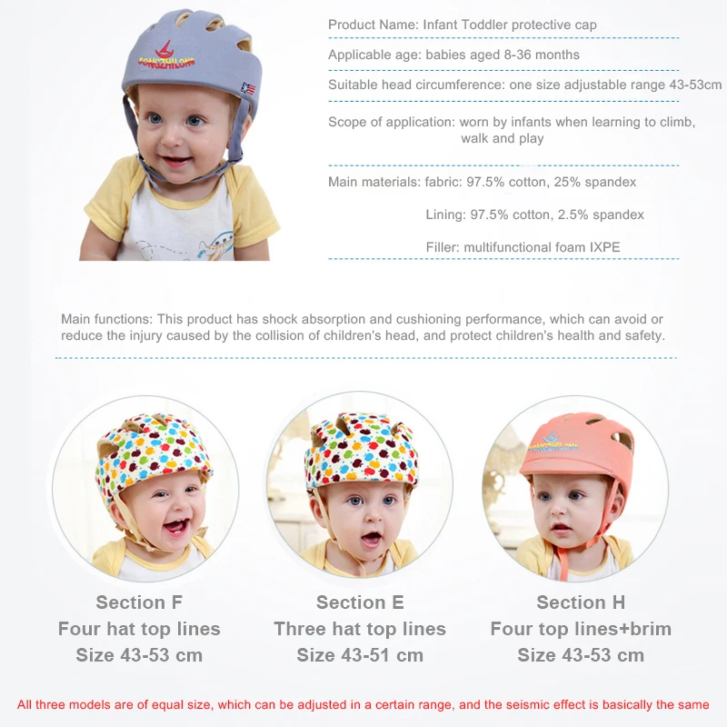 Your baby may not adapt to the toddlers helmets hat at first, even our helmet is soft and comfortable, so it needs your patience for your baby's adaptation process. Even if the baby wears the baby head helmet, it still needs the care of adults.It's not professional safety helmet caps,so it can't be use for riding a bike or other outdoor sports.