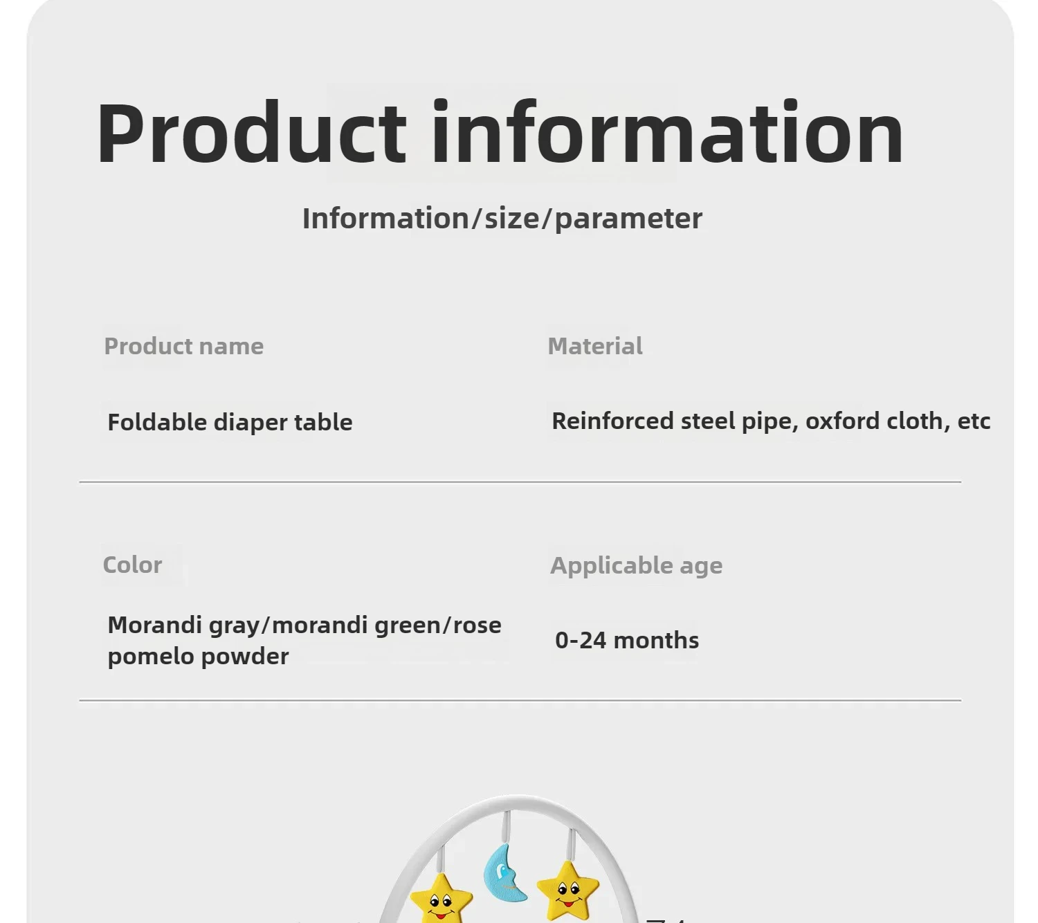 SEO Keywords:baby diaper changing table, foldable baby station, baby bath changing table, multi-functional baby care, portable diaper station, baby changing station with storage, antibacterial baby table, foldable diaper table |