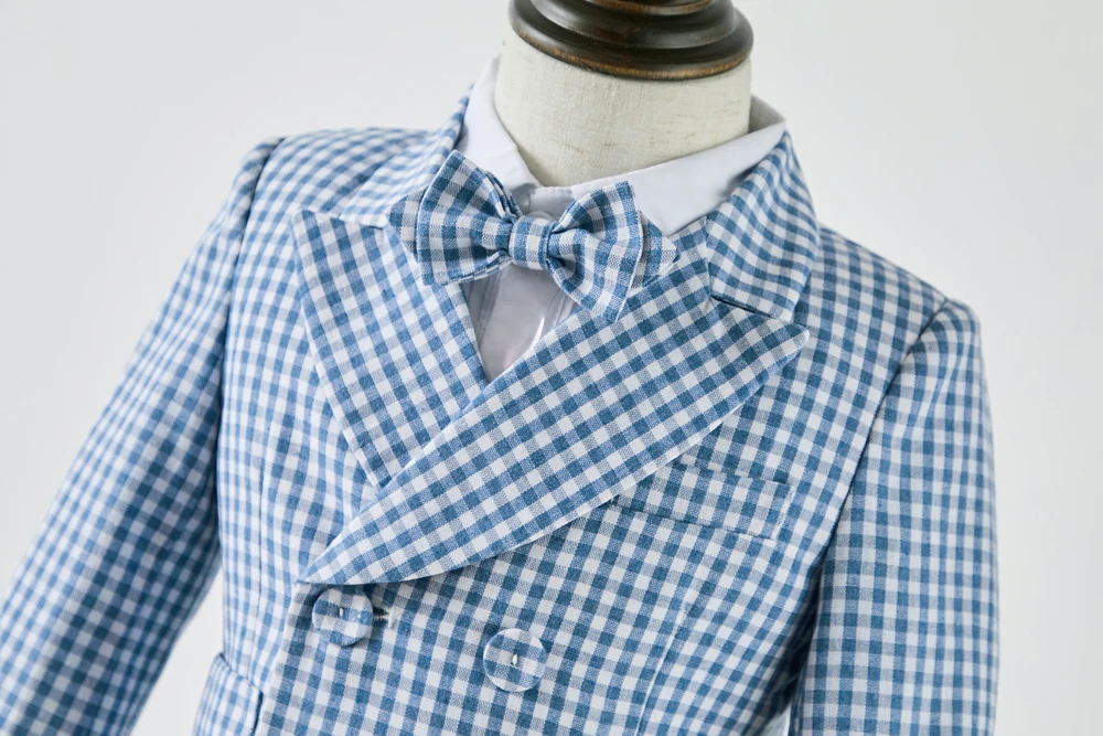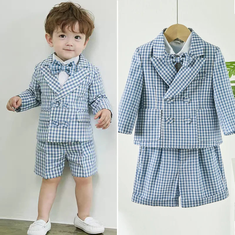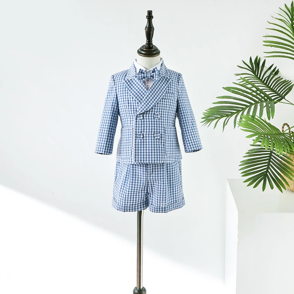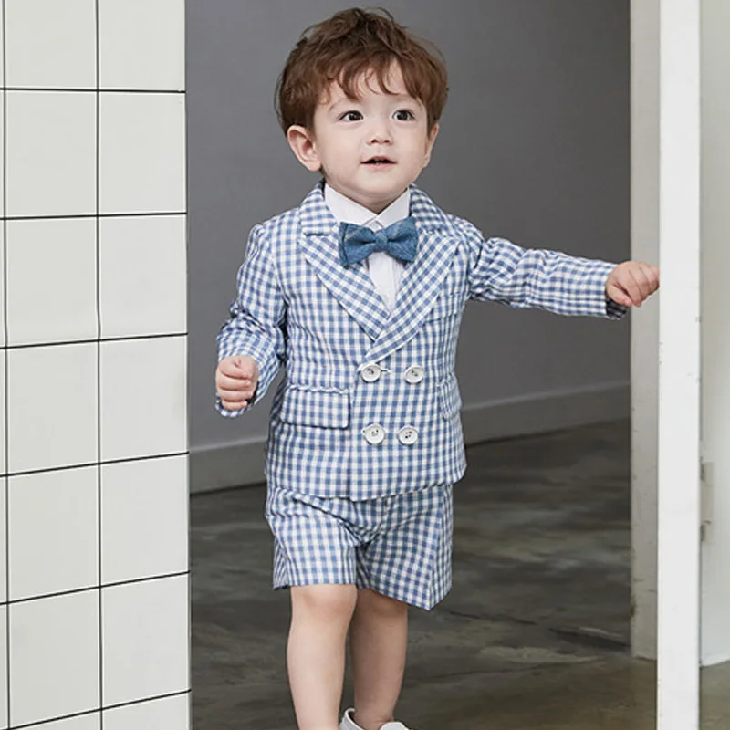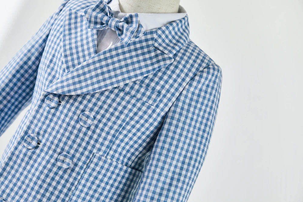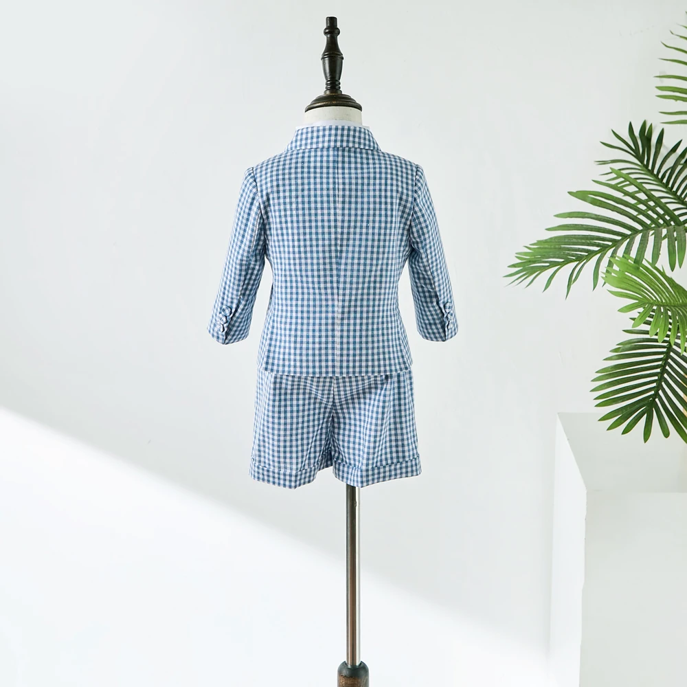 Baby Photograph Lattice Boys Suit Birthday Linen Thin Summer Little Boy Gentleman Outfit Formal Suits Children Coat Clothes Set