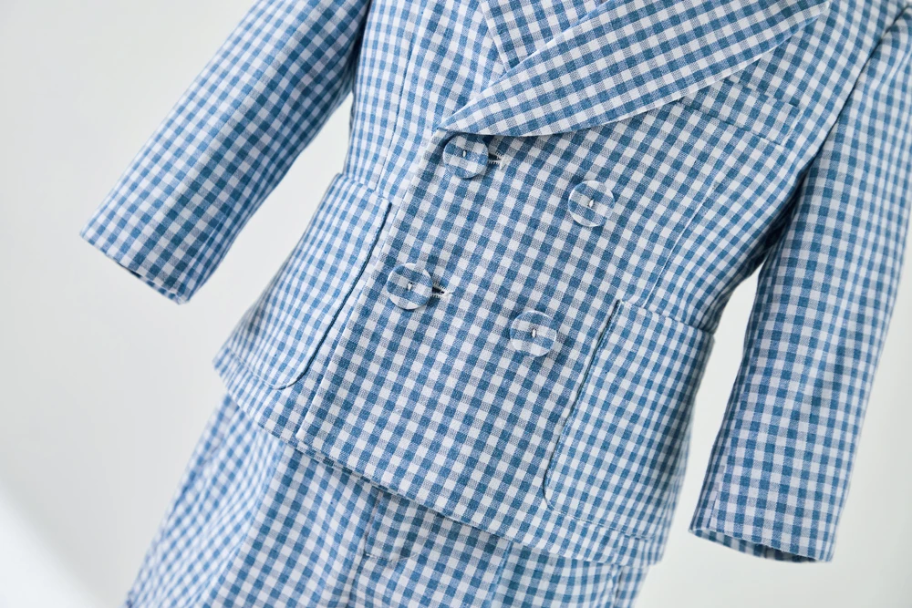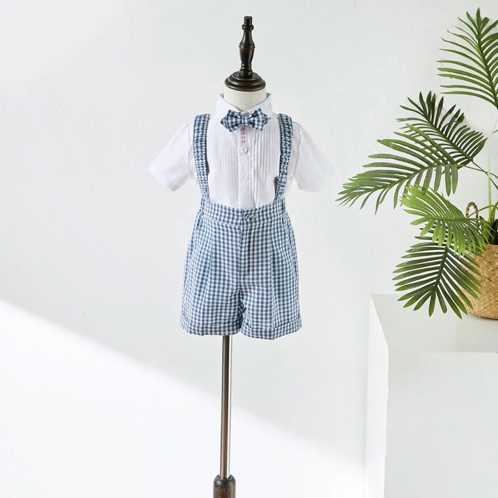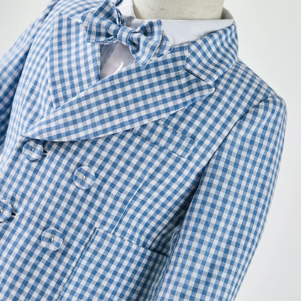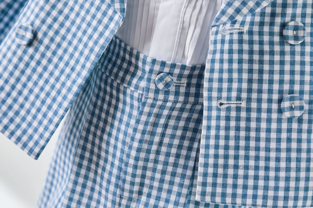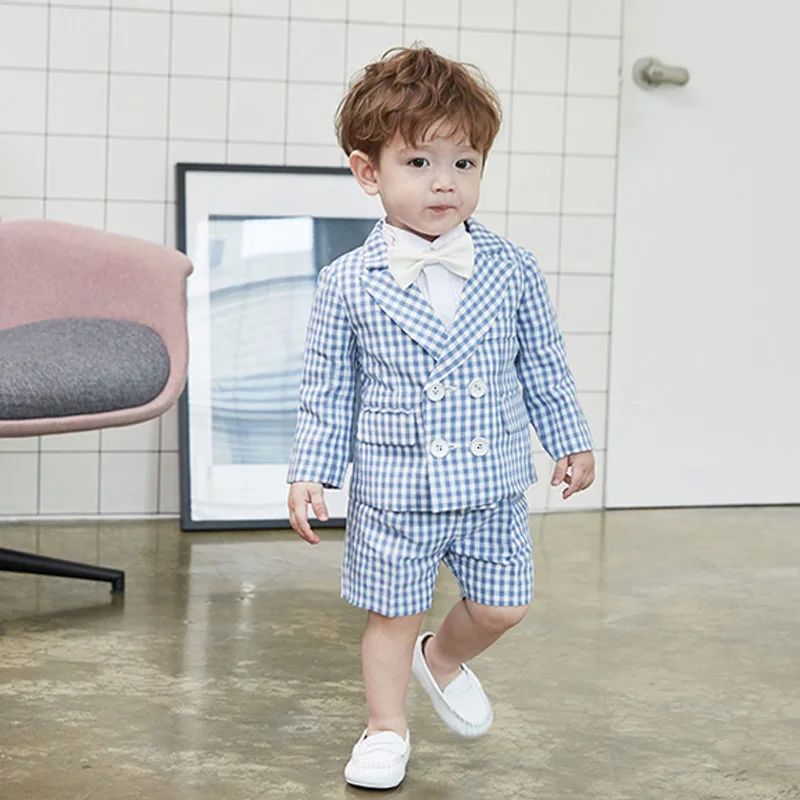 Baby Photograph Lattice Boys Suit Birthday Linen Thin Summer Little Boy Gentleman Outfit Formal Suits Children Coat Clothes Set