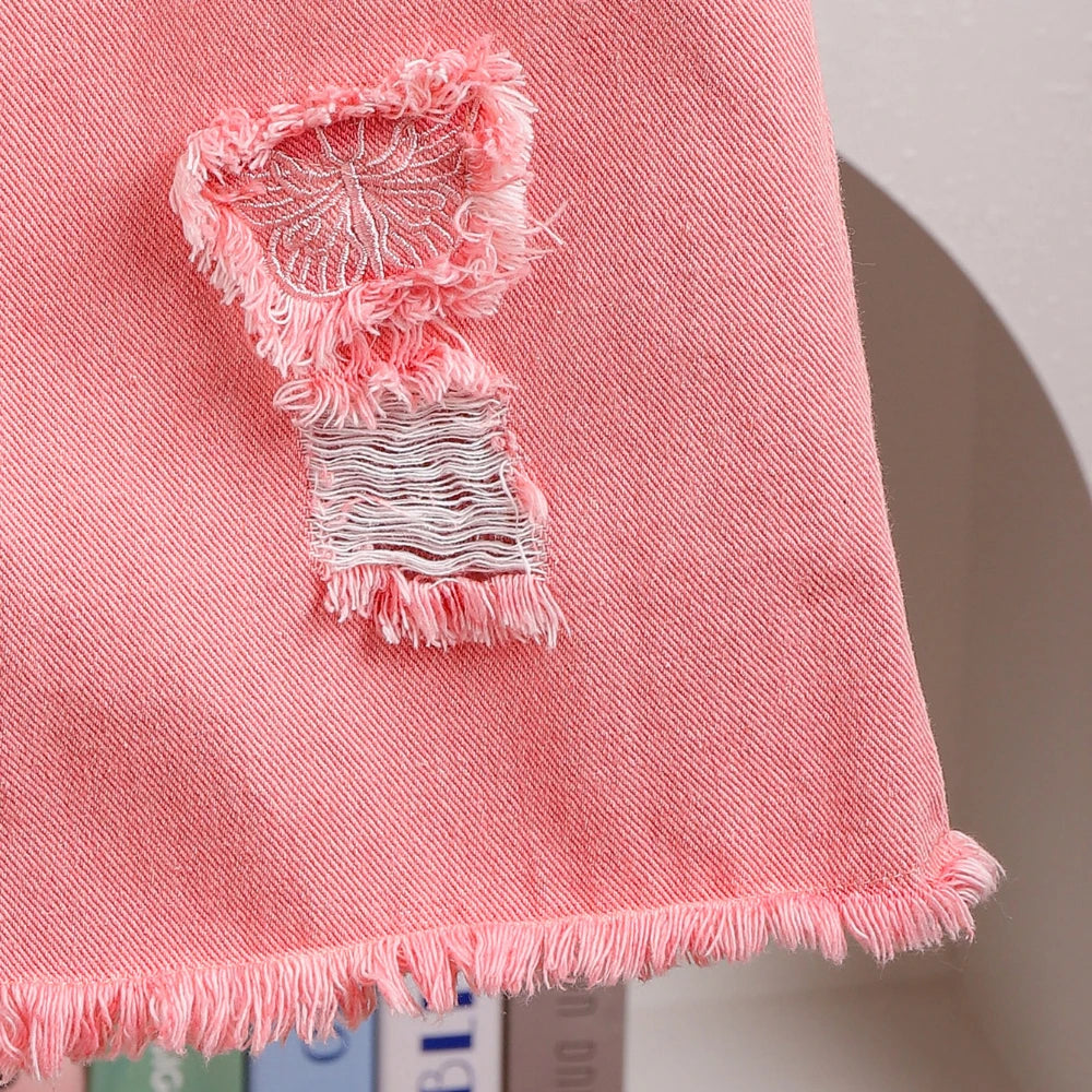 Bear Leader 2025 Summer 4-6 Year Old Streetwear Girls' Sets Sleeveless Butterfly Vest+Pink Cowboy Piercing Patch Pants 2-Pcs Set