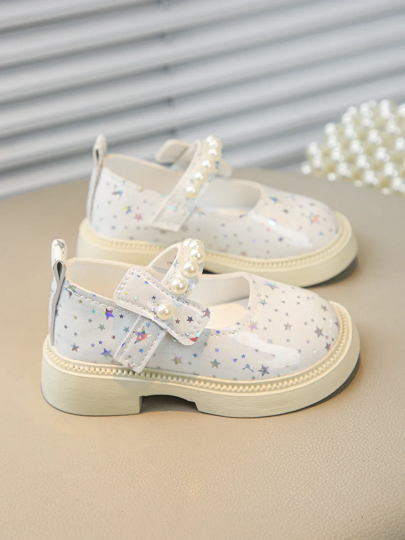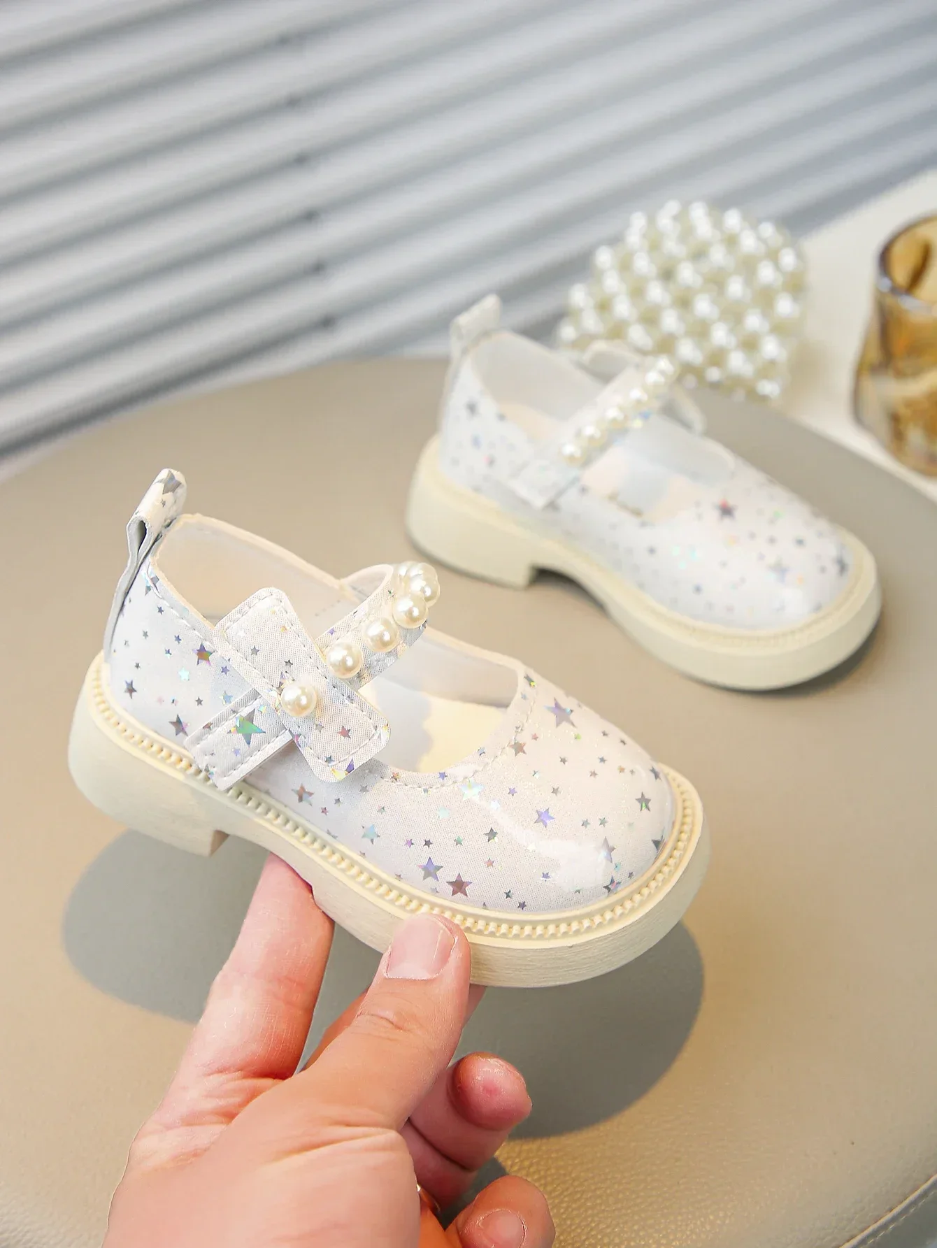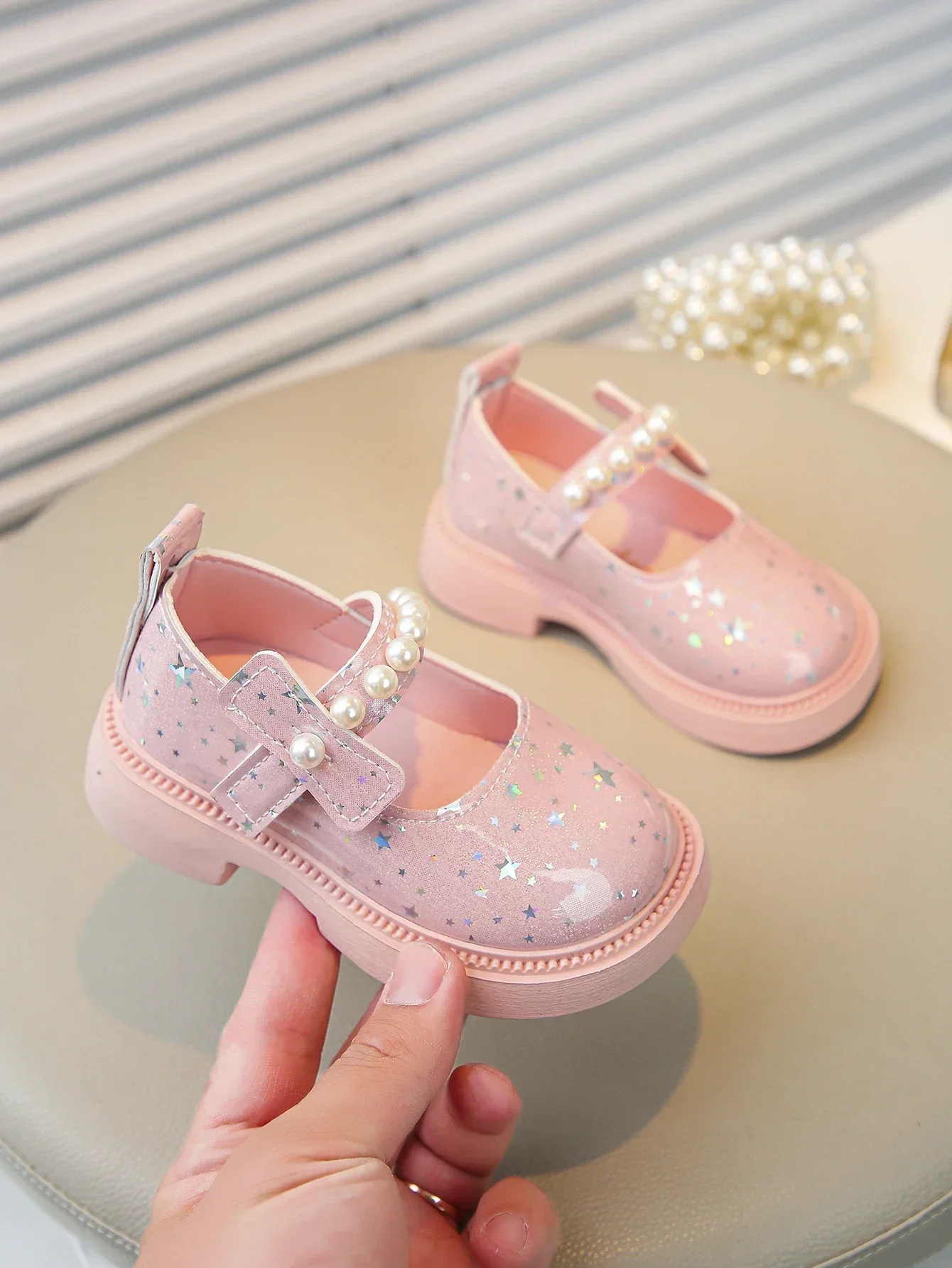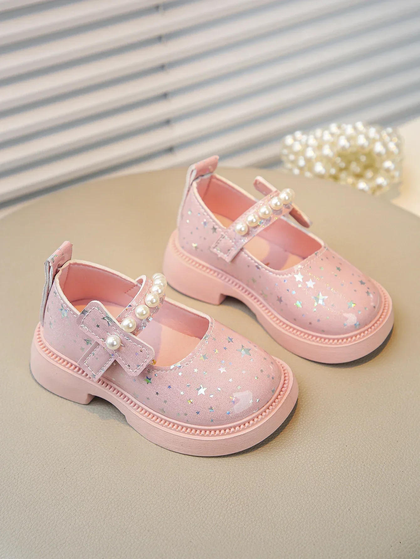Bling All Over Stars Fashion Leather Shoes for Kids Girls Beading Black Pink White Rubber Children School Dress Shoes New I01163