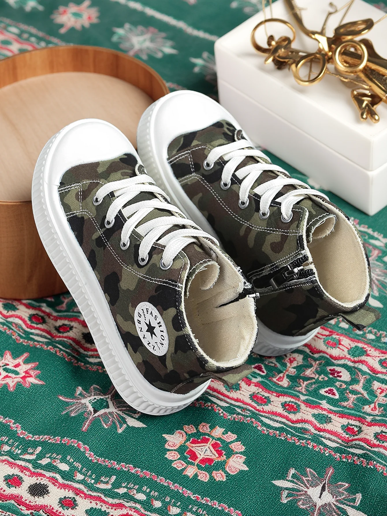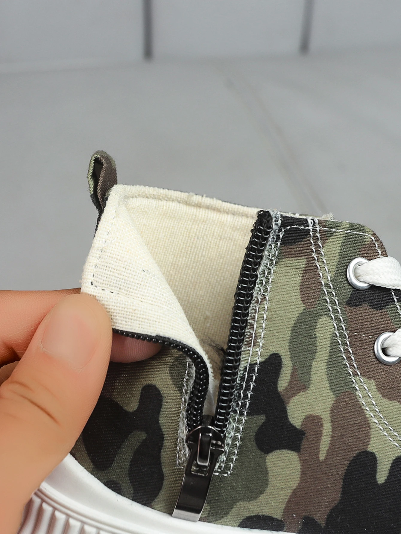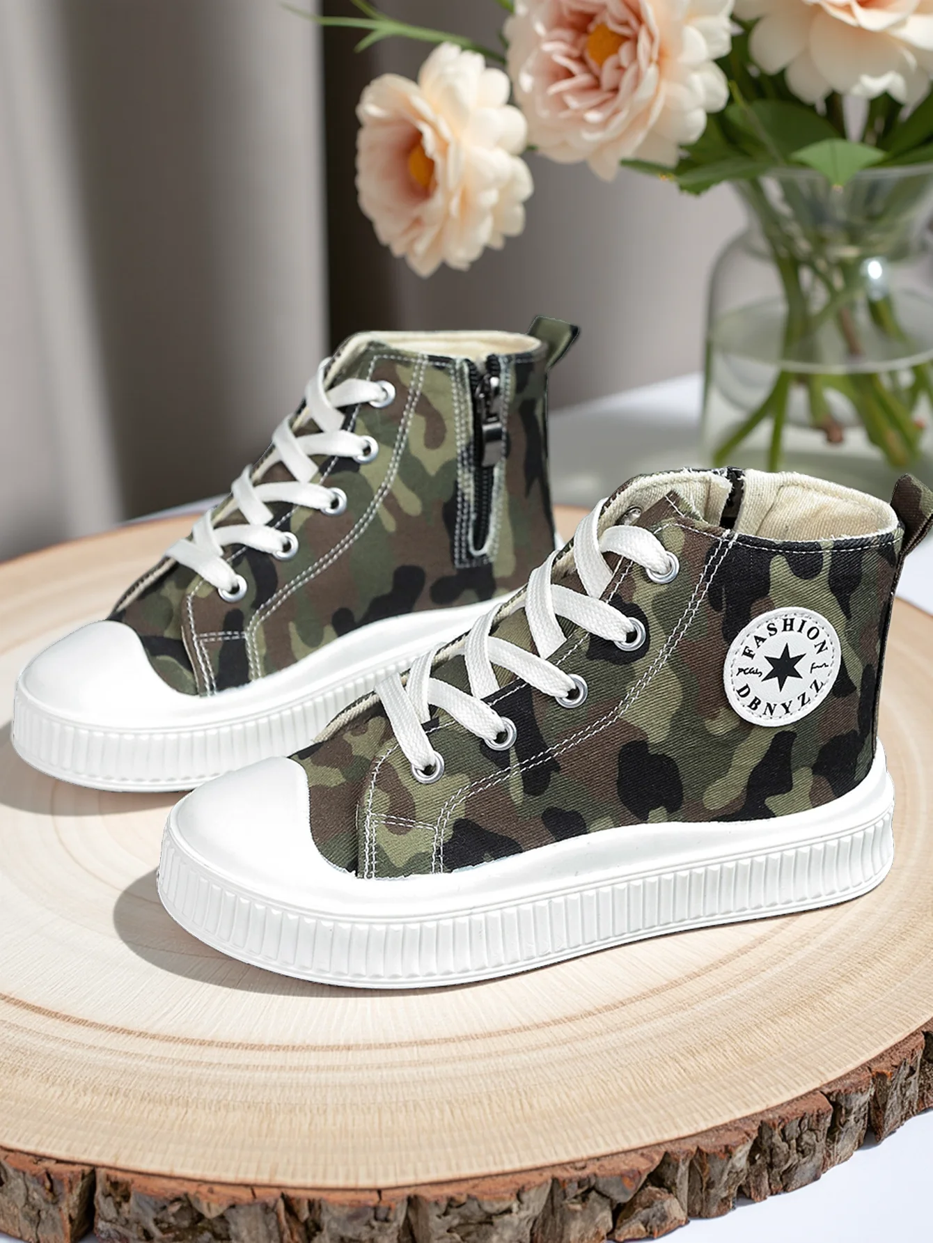 Boys camouflage canvas shoes breathable and comfortable girls casual sneakers spring, summer, autumn and winter four seasons zip