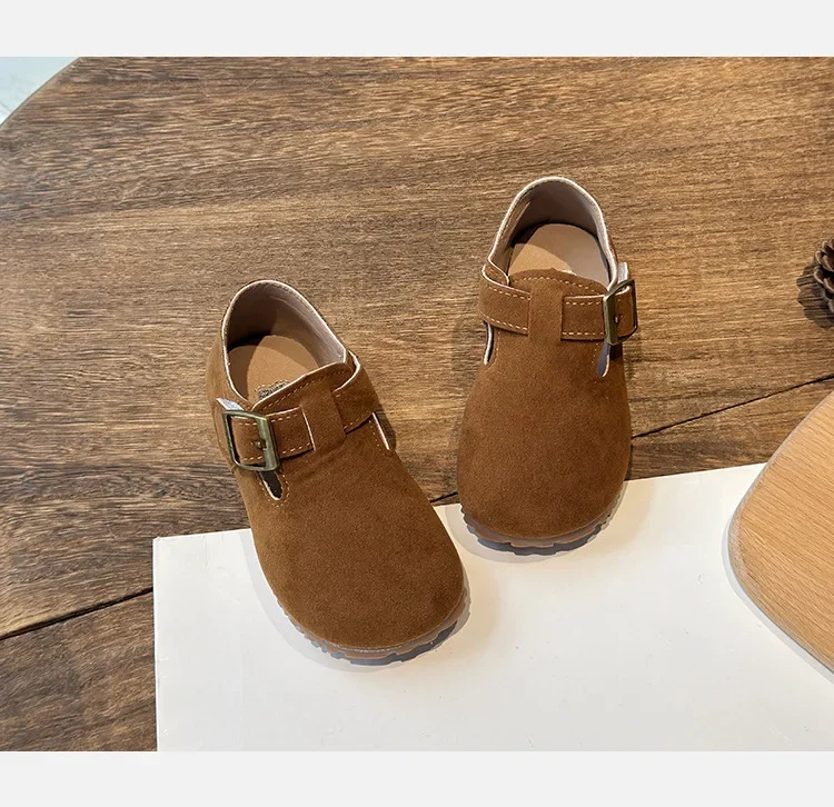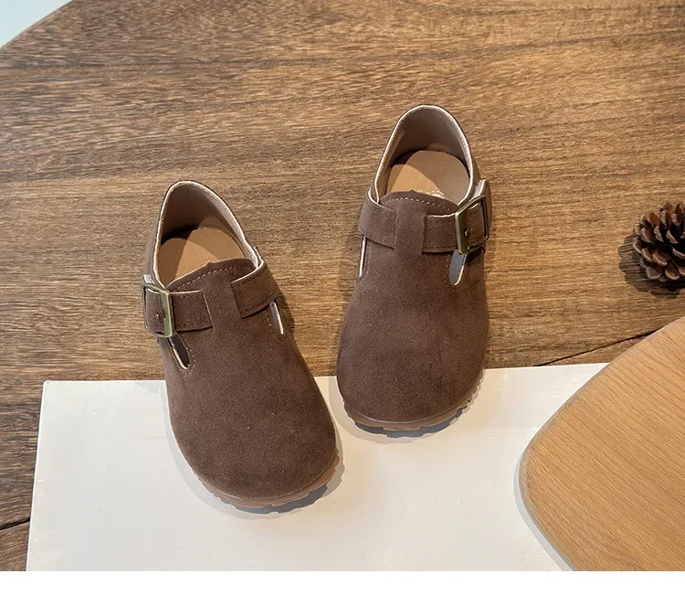Boys Girls Moccasins Retro Non-slip Sweet Kids Flat Shoes Soft Sole 2024 New Fashion Children Leather Shoes Hook&loop Elegant