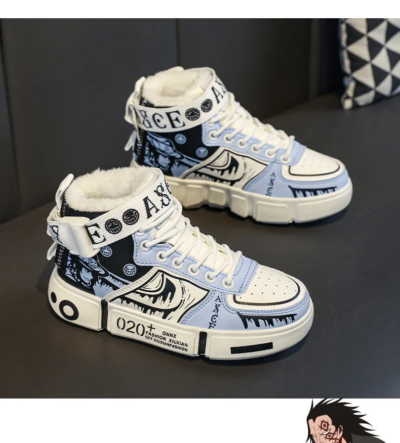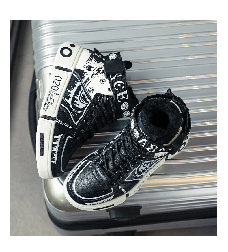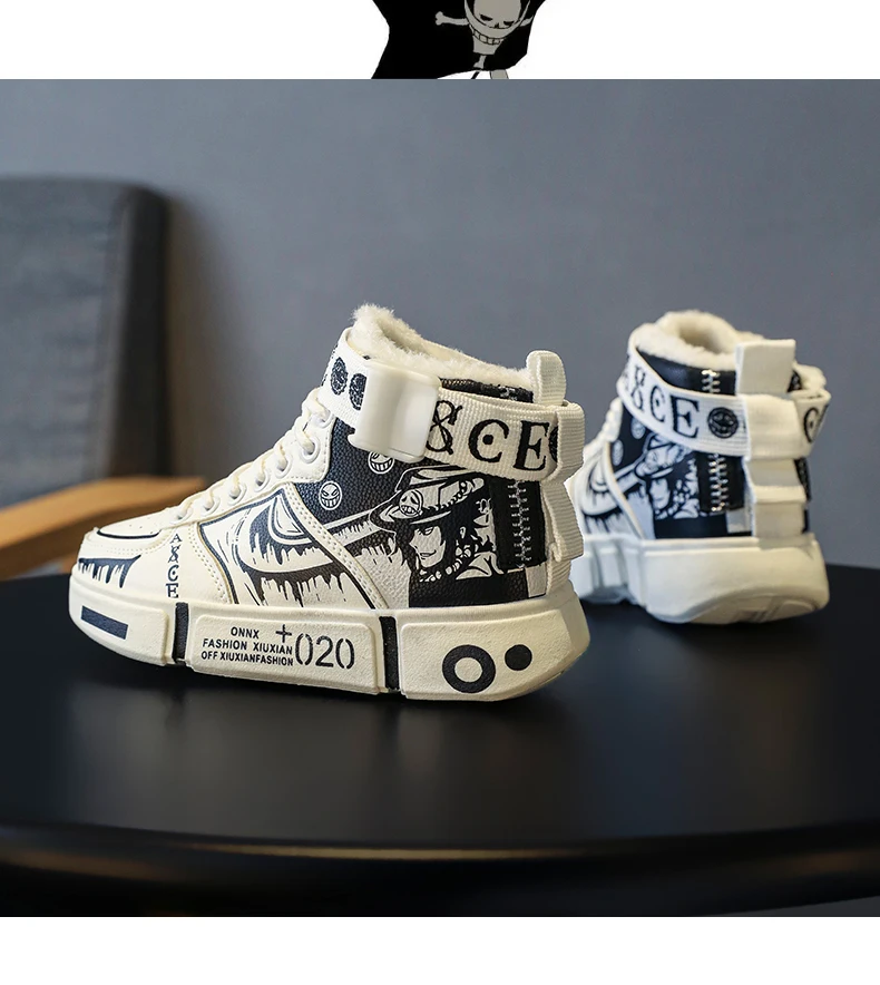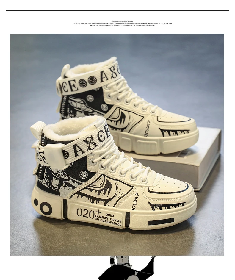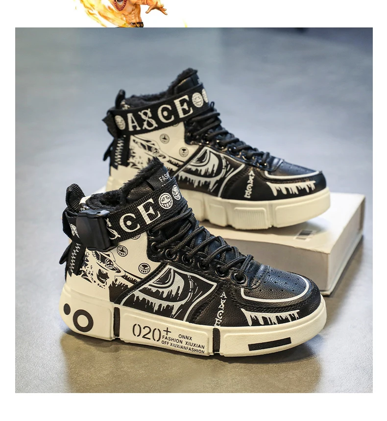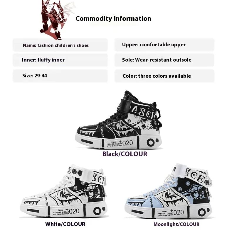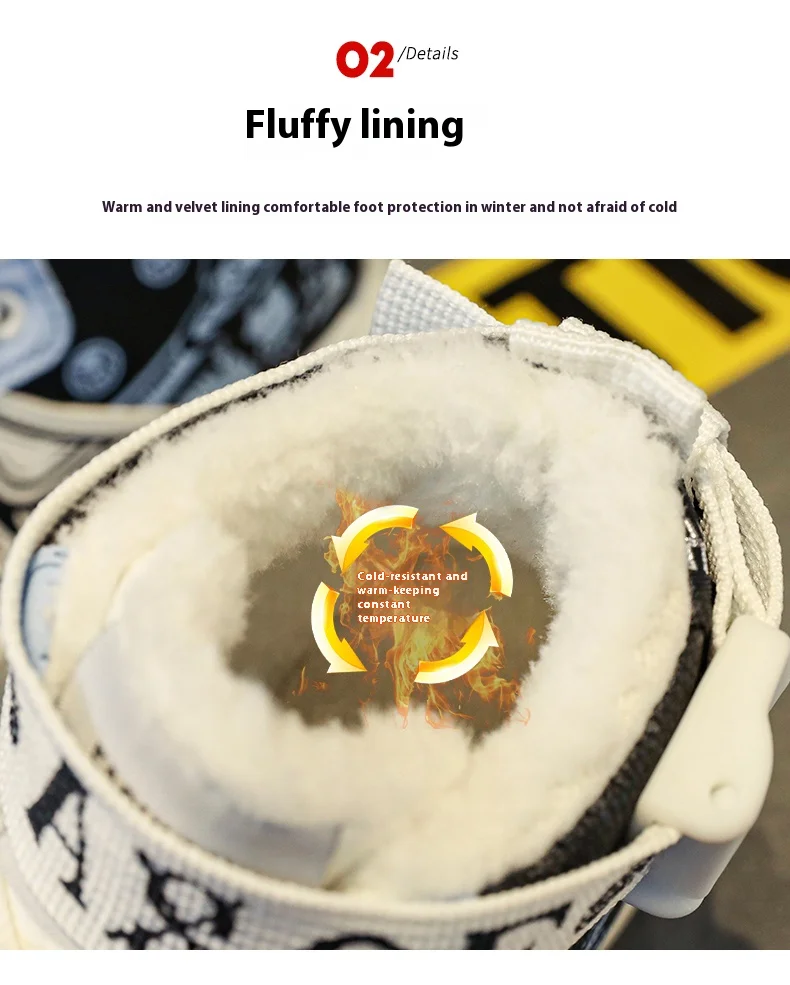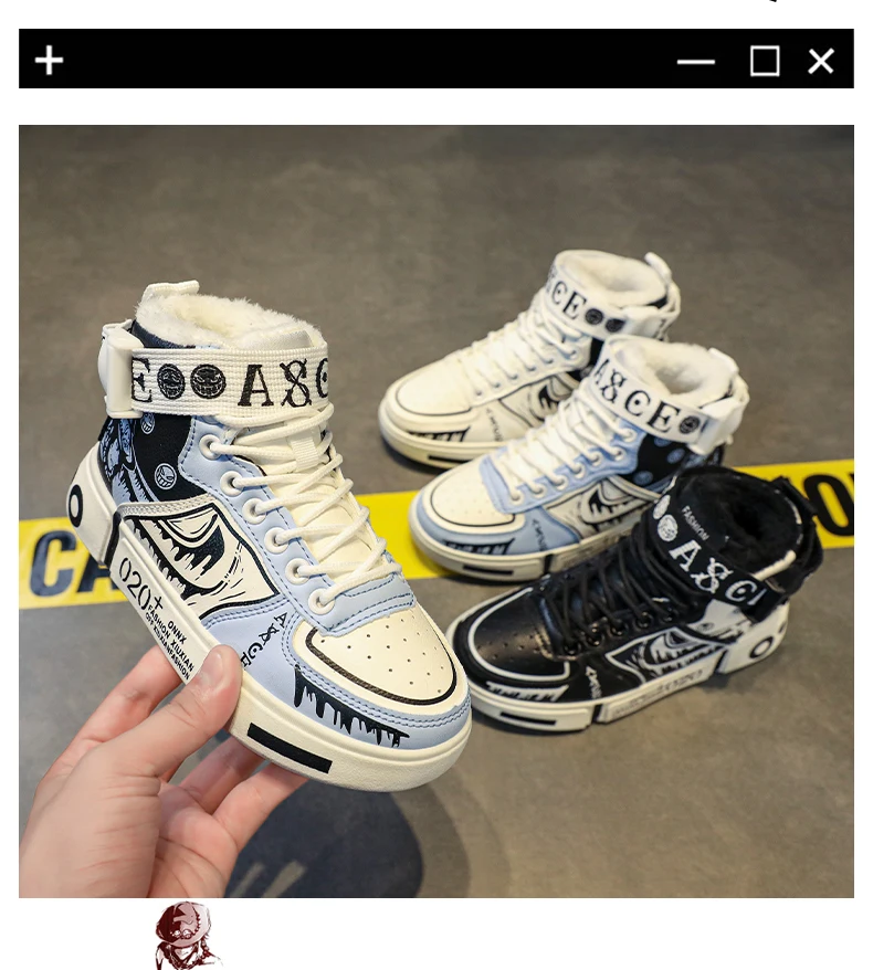 Boys' shoes Cotton shoes Winter 2025 new fleece thickened children's sports shoes large children high top board shoes