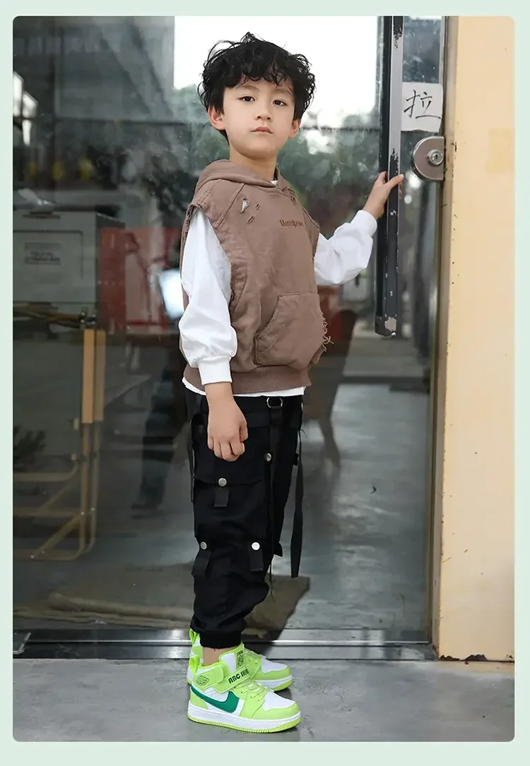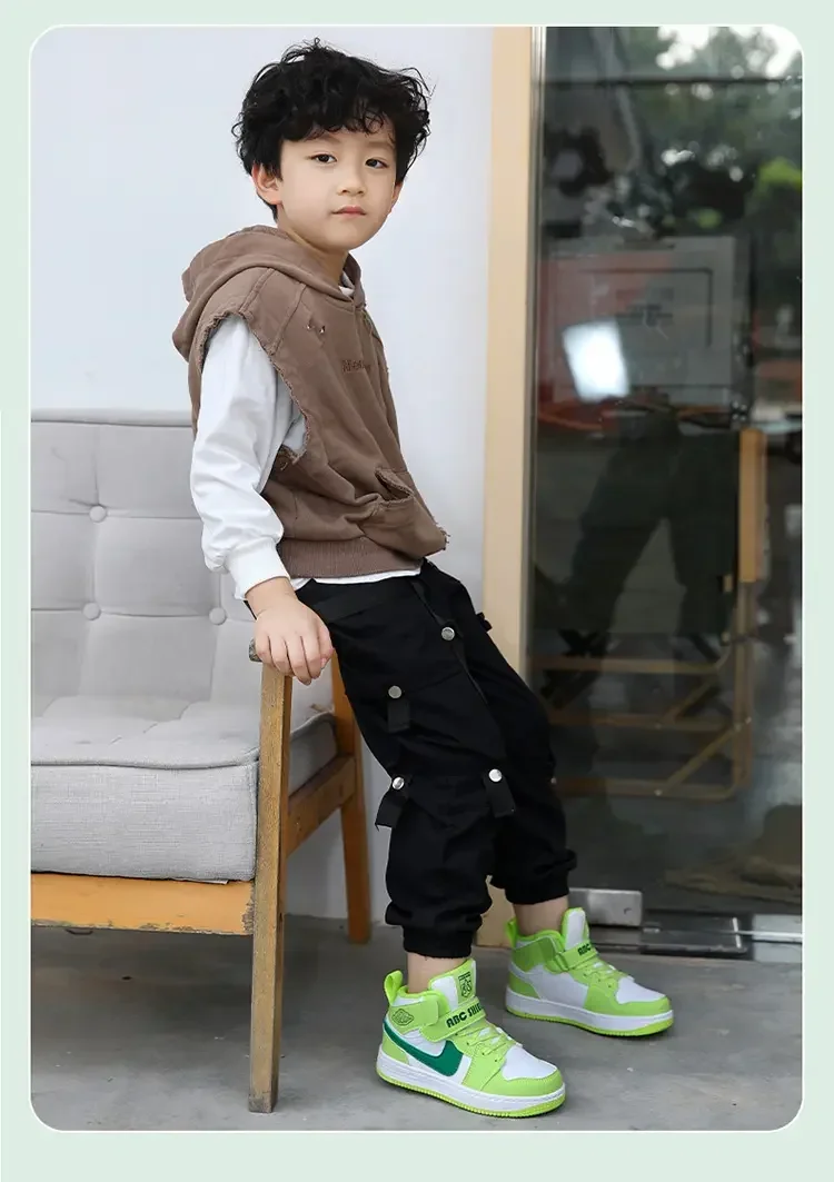 Boys' Sports Shoes 2024 Fall New Children's Shoes Basketball Shoes Net Top Student Non-slip Running Shoes Chaussure De Sport