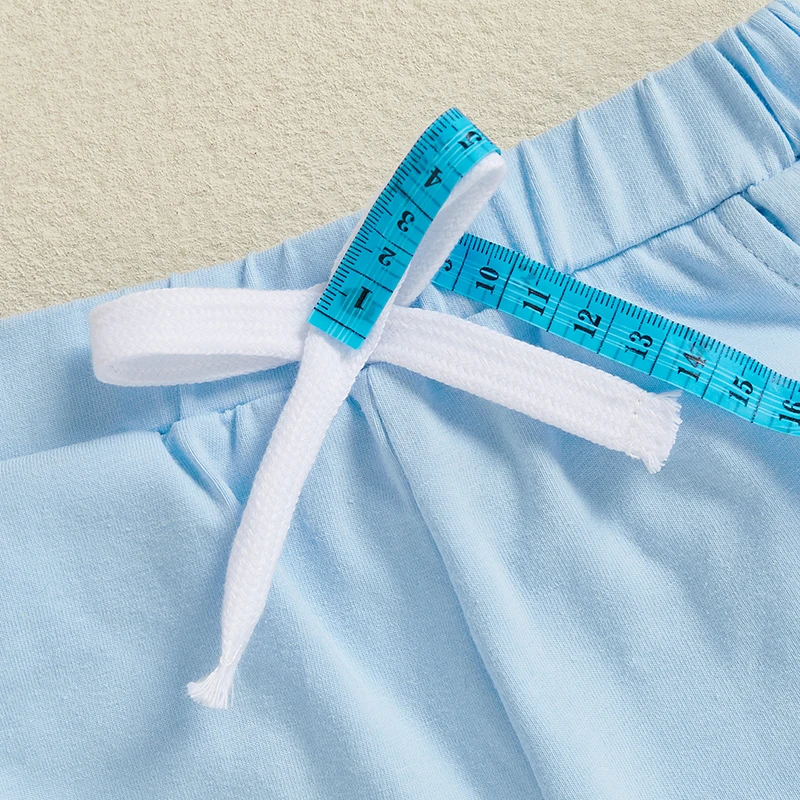 2-3Y Tops Length: 15.75 Bust: 23.62 Sleeve: 5.51 Shoulder: 10.63 Pants Length: 10.63 Waist: 18.11 Hip: 27.17 Advised Age: 2-3 Years