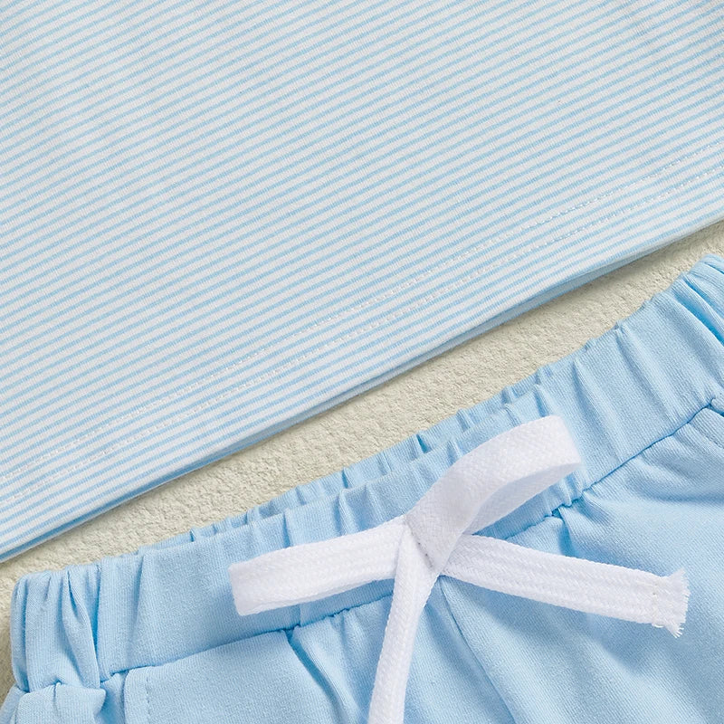 Boys Summer Shorts Sets Short Sleeve Lapel Sailboat Embroidery Tops and Solid Color Shorts SetsSize (cm)
