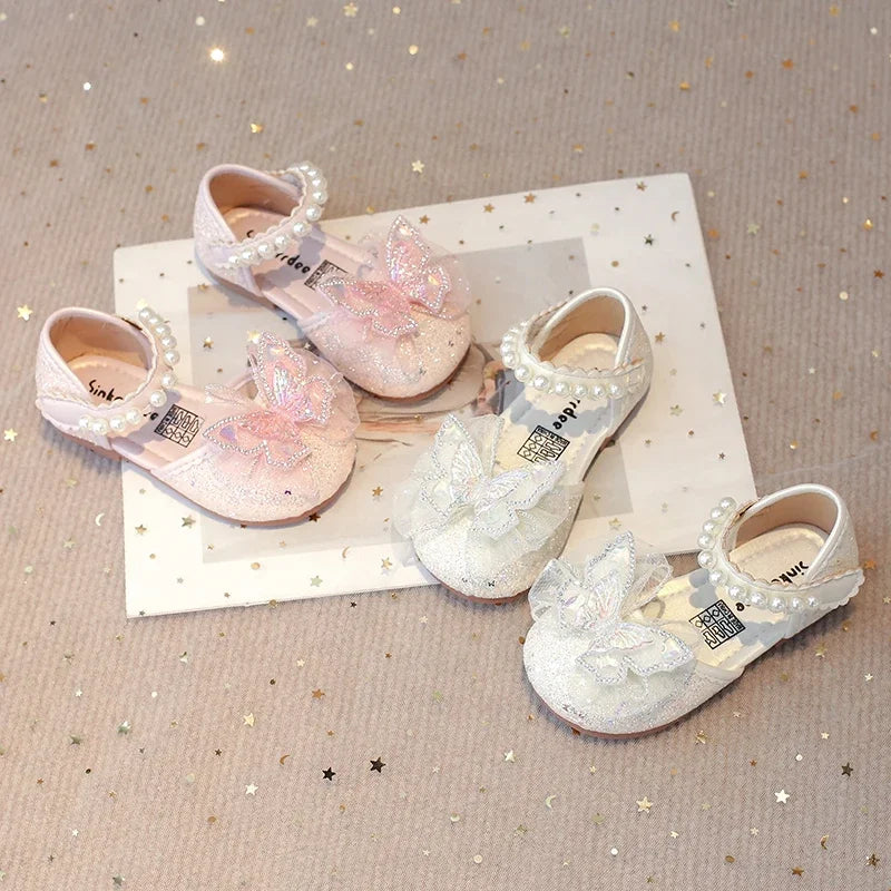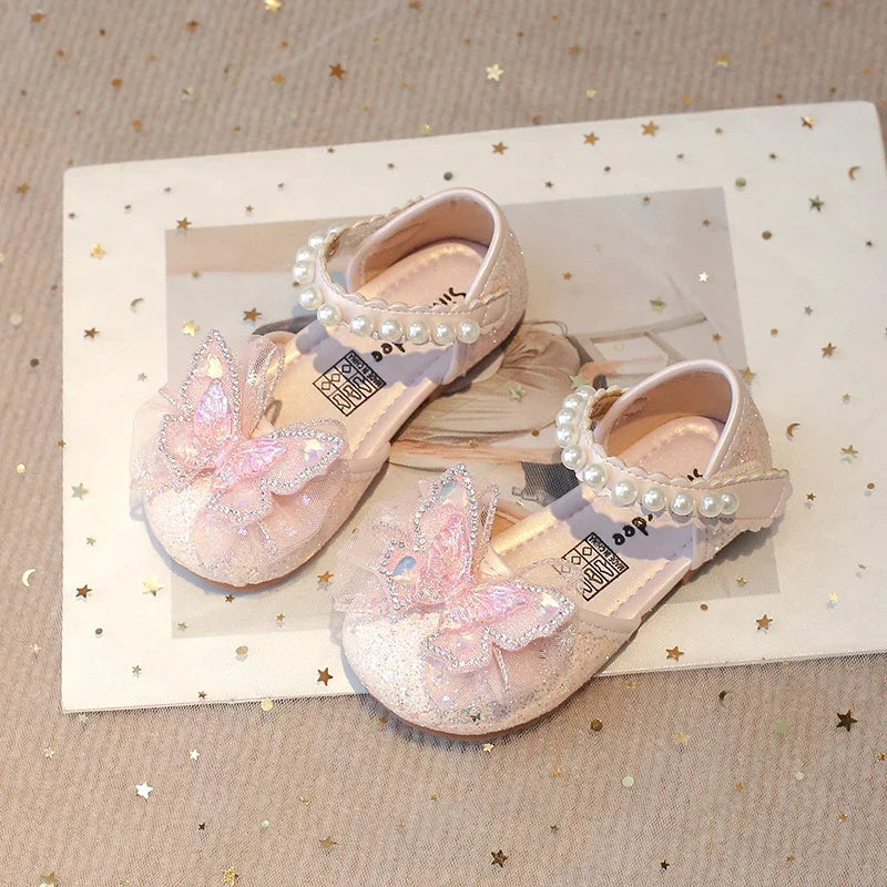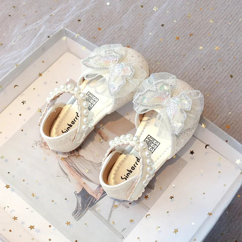 Chic Girls Dress Shoes for Wedding Party Bling Sequins with Rhinestone Butterfly Sweet Princess Chic Kids Flat Shoes Lace Beaded