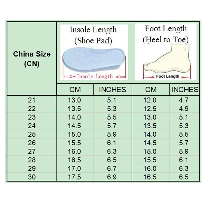 The Size isn't Standard US Size or Euro Size, please choose the size according to "Foot Length" or "Insole Length".