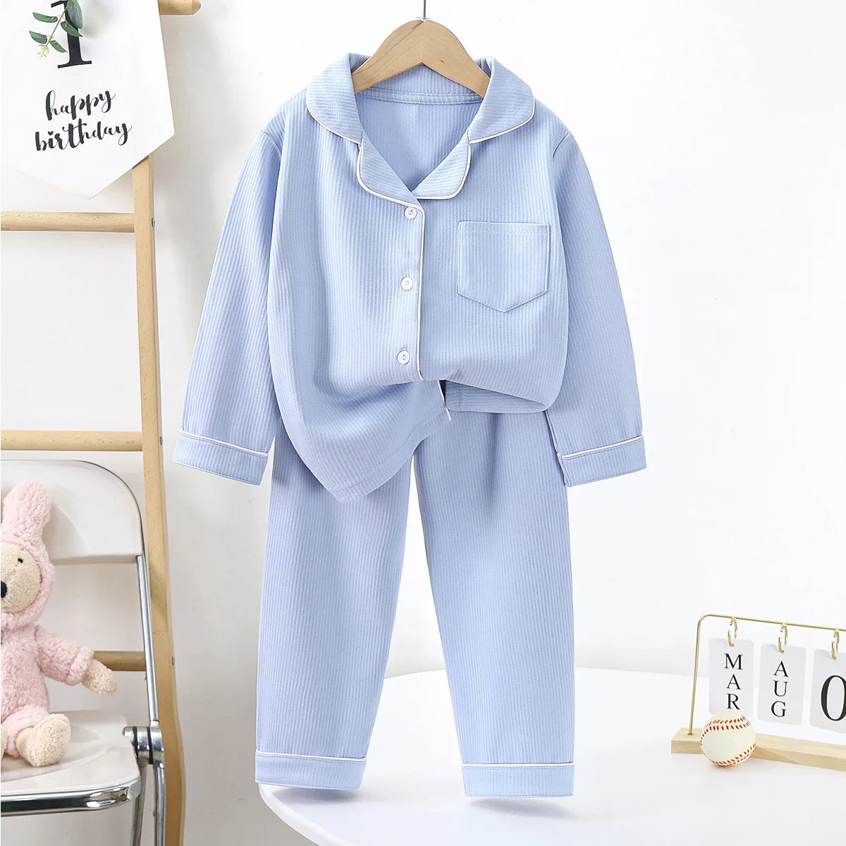 Children Cotton Underwear Set Boy Baby Clothe Girl Button Down Sleepwear Loungewear Spring Fall Kid Long Sleeve Pajama 2pcs Suit
