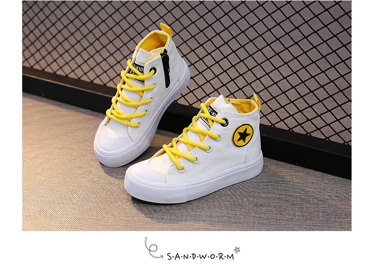 Children High-top Casual Canvas Shoes Boys Girl Zipper Flat Bottom Breathable Board Shoes Kid Cycling Sports Outdoor Board Shoes