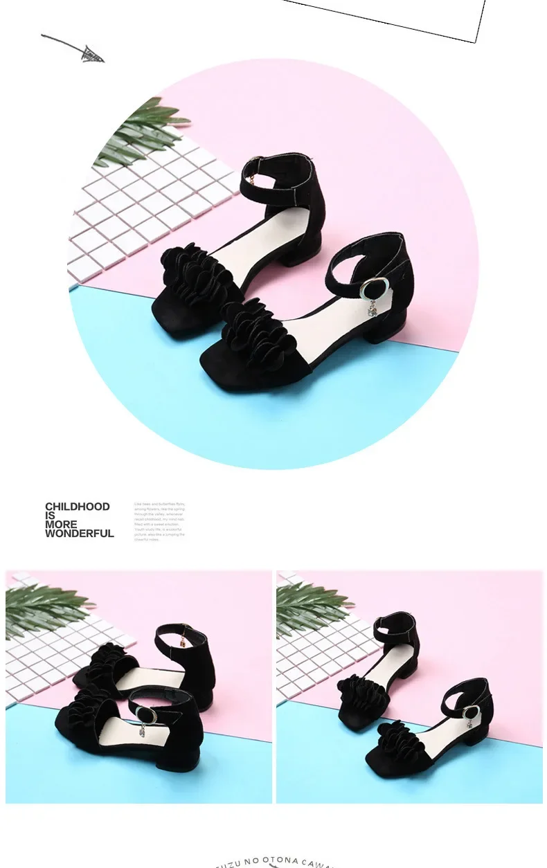 Children Princess Shoes for Wedding Party Summer Chic Girls Causal Flower Sandals Fashion Open-toe Kids Low-heels Dress Sandals