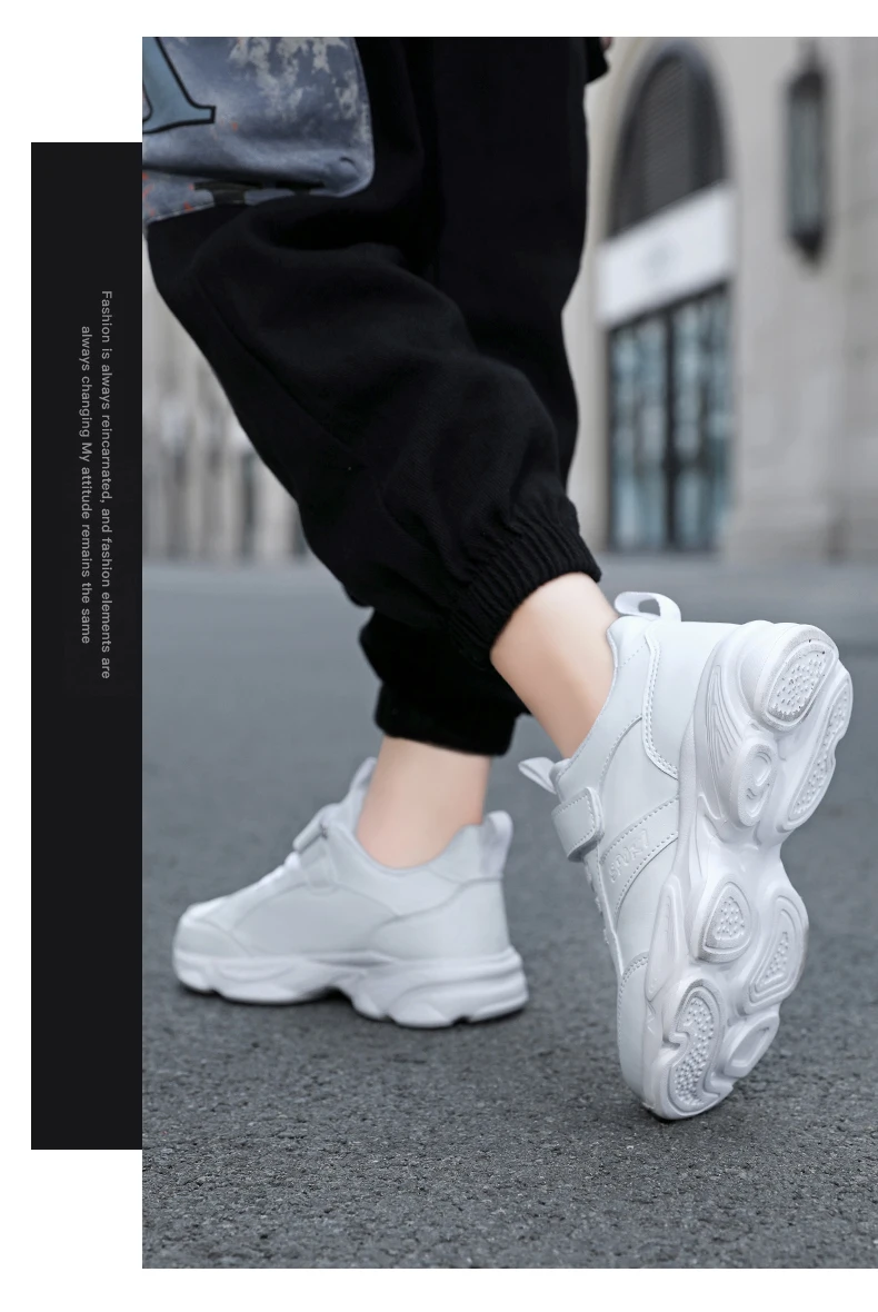 Children Shoes Kids Casual Sneakers Black Pu Leather Sports Shoes for Boy Girls White Shoes School Running Tennis Sneaker