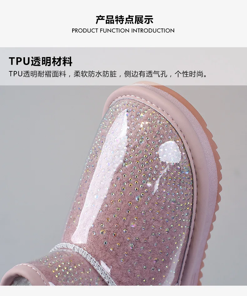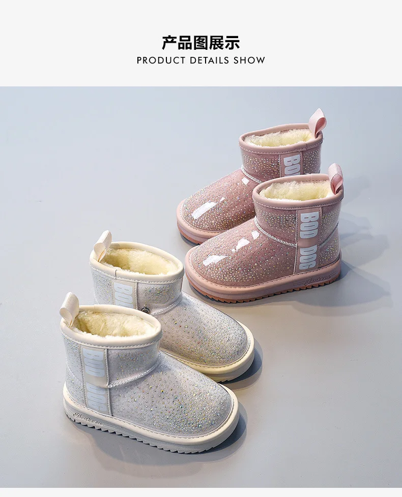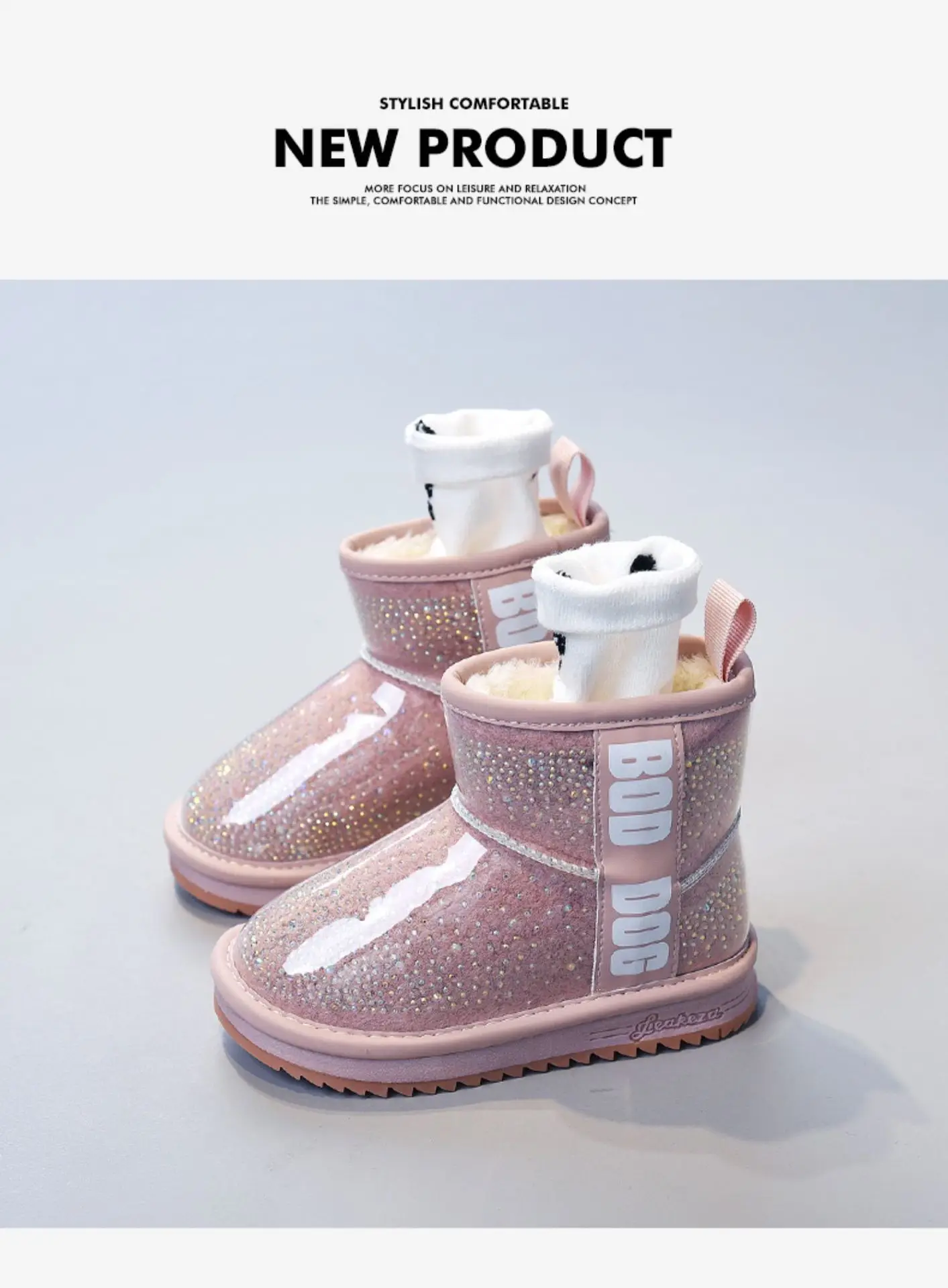 Children Shoes Luxury Designer Girls Boy Fashion Waterproof Upper Snow Boots Brand Baby Thick Plush Ankel High Warm Winter Boots