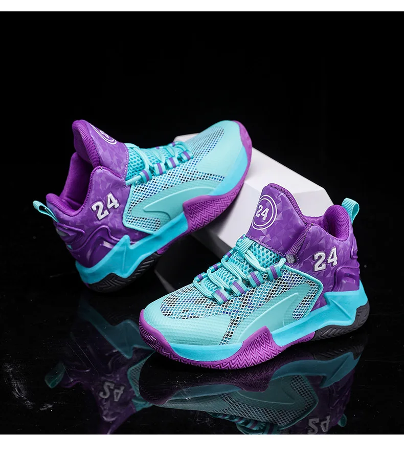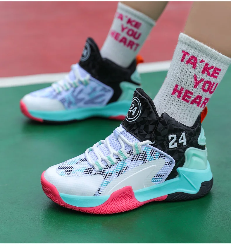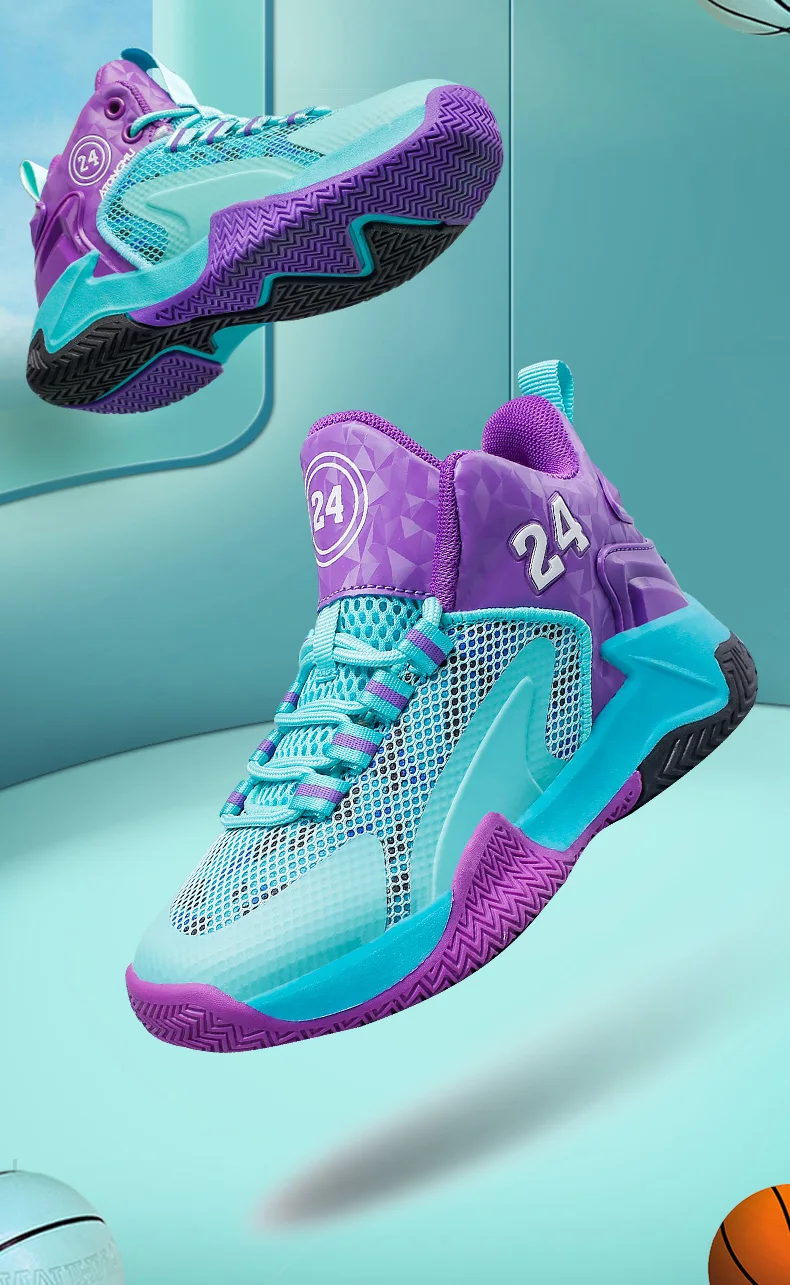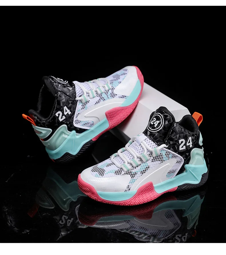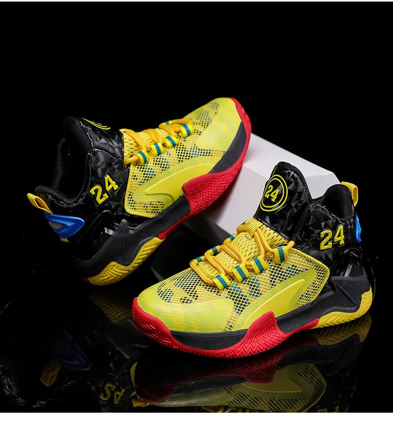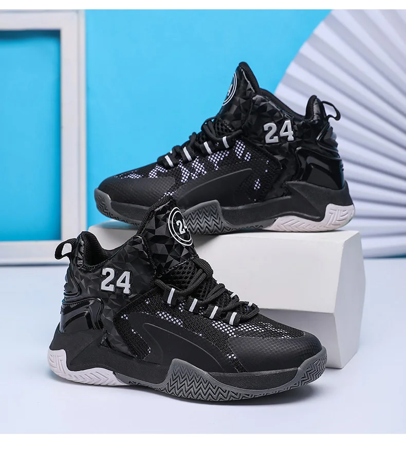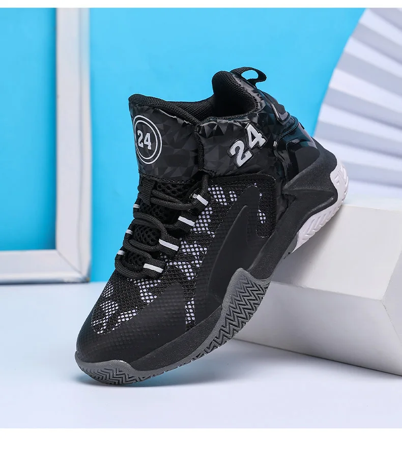 Childrens Basketball Shoes Big Kid Non Slip High-top Sport Training Sneakers Lightweight Outdoor Basketball Boots for Boy Youth