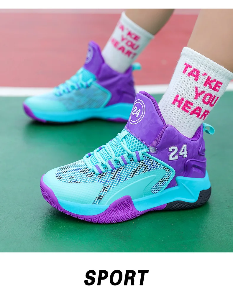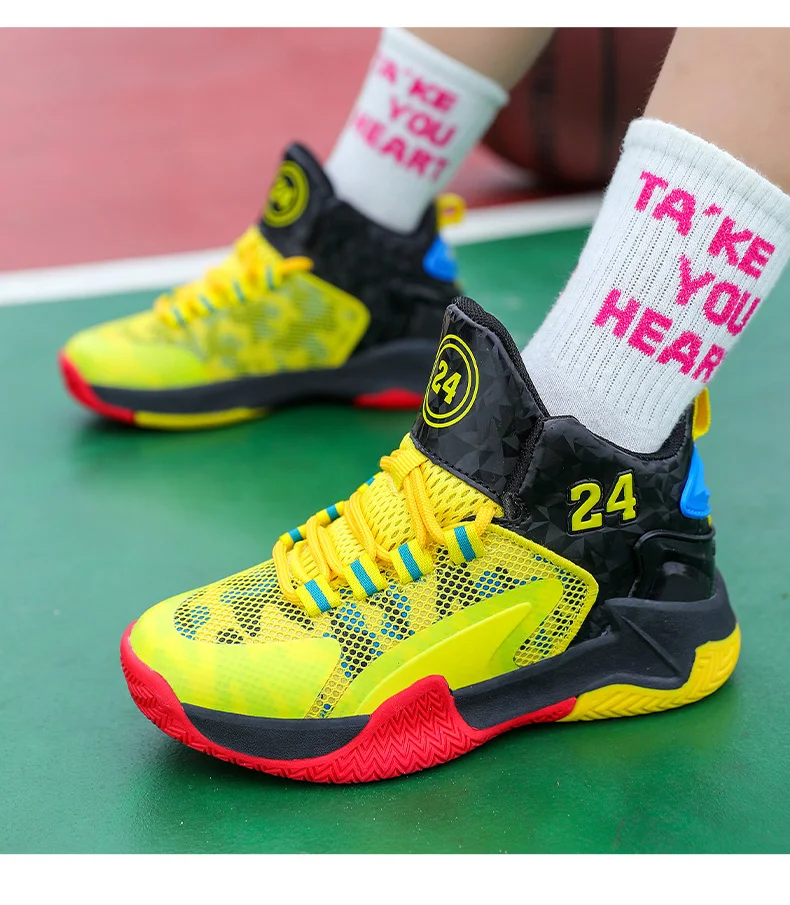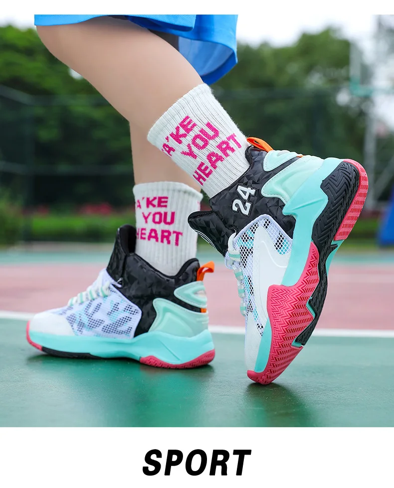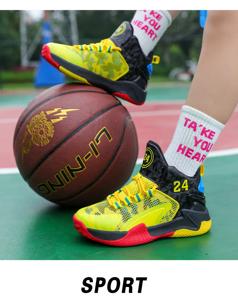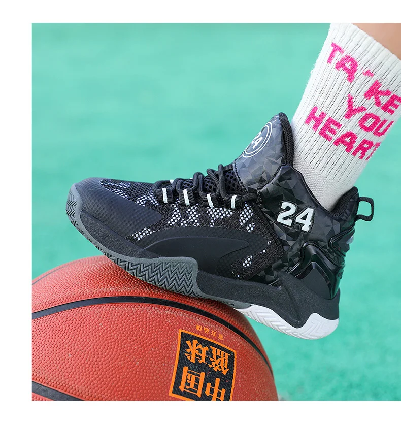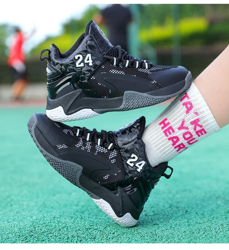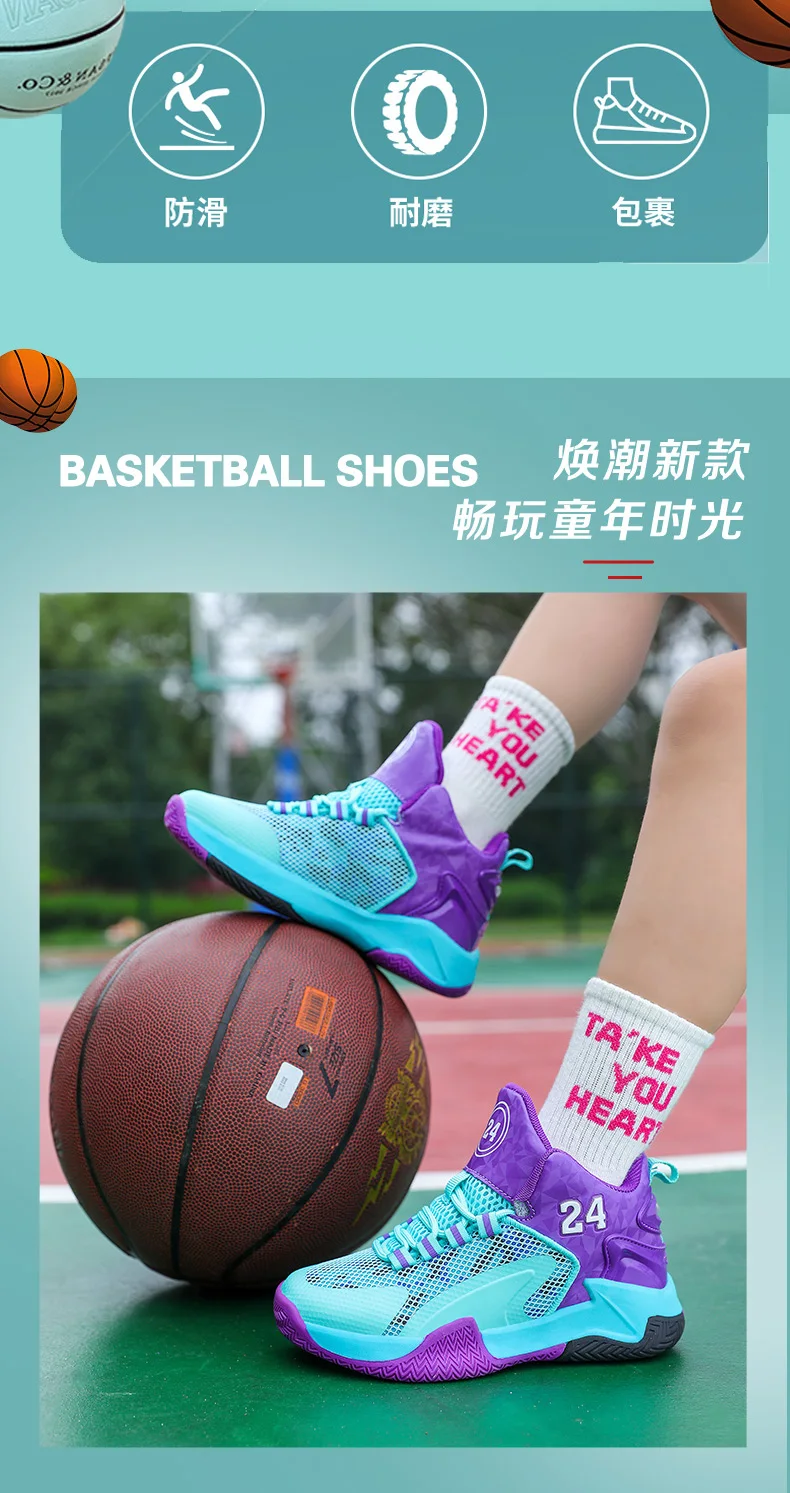 Childrens Basketball Shoes Big Kid Non Slip High-top Sport Training Sneakers Lightweight Outdoor Basketball Boots for Boy Youth