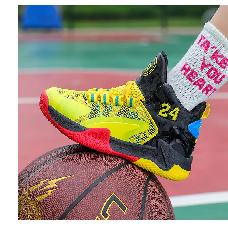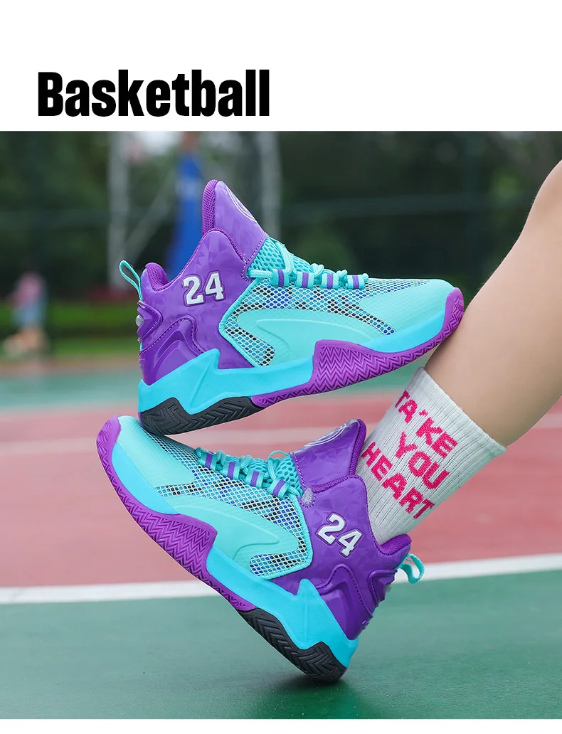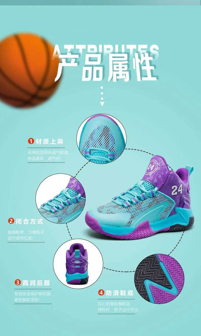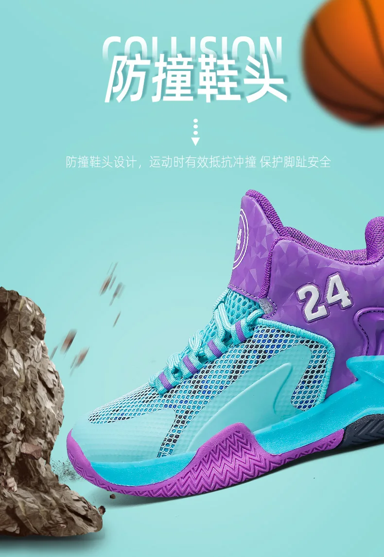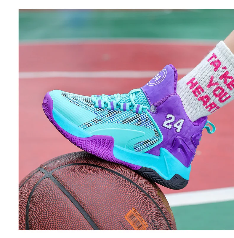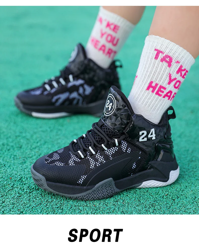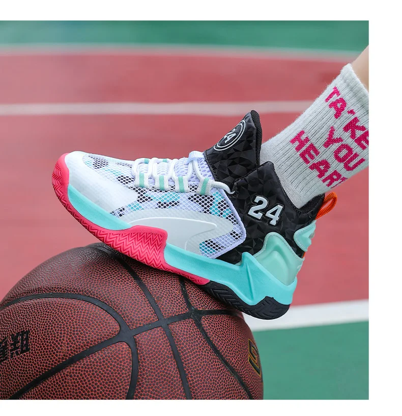 Childrens Basketball Shoes Big Kid Non Slip High-top Sport Training Sneakers Lightweight Outdoor Basketball Boots for Boy Youth