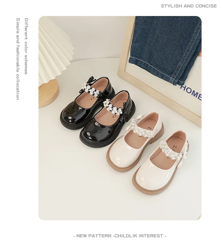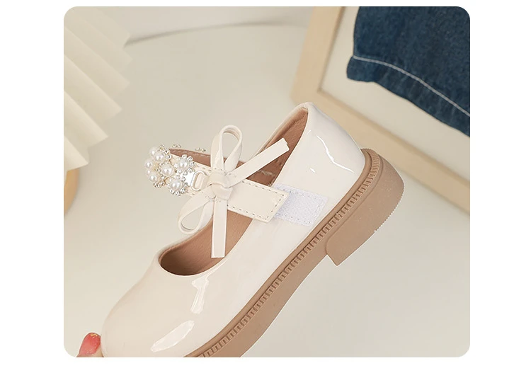 Children's Leather Shoes Glossy PU Black School Girl Shoes Fashion Sweet Kids Princess Soft Bottom Mary Jane Shoes Side Bowknot