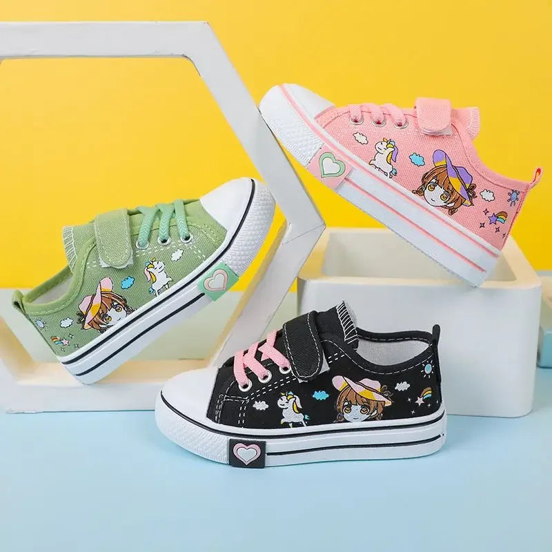 Children's New Spring Canvas Shoes Cartoon Graffiti Children's Casual Shoes for Girls Comfort Fashion Kids Flat Tennis Sneakers