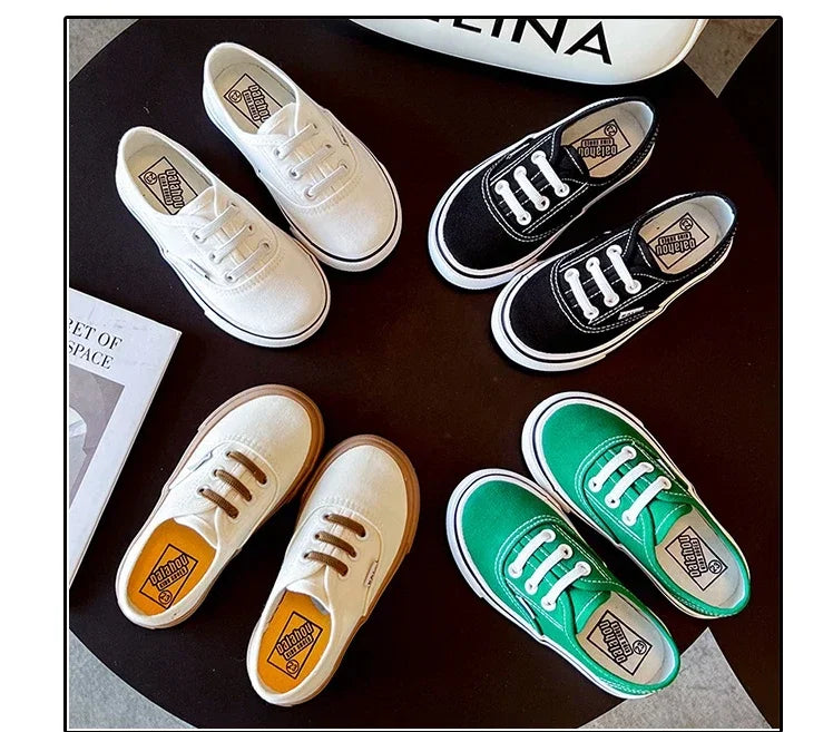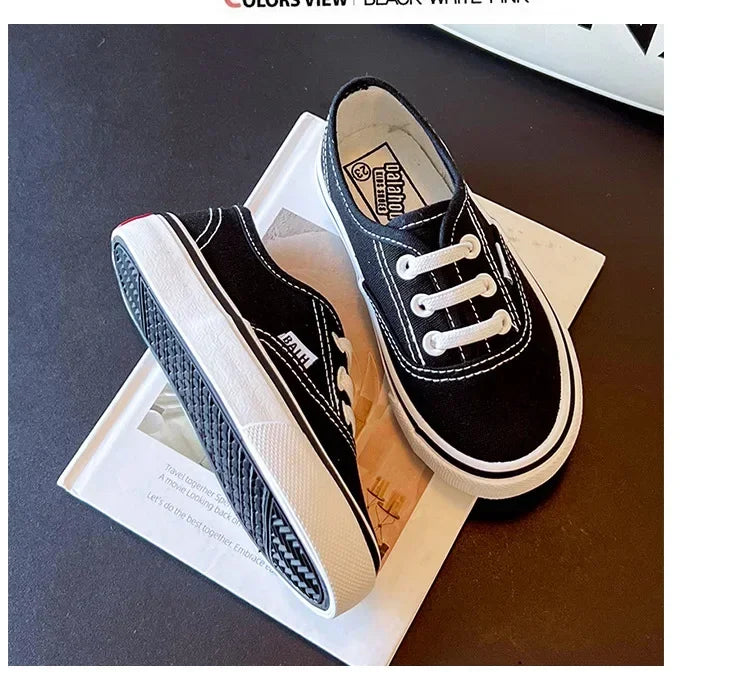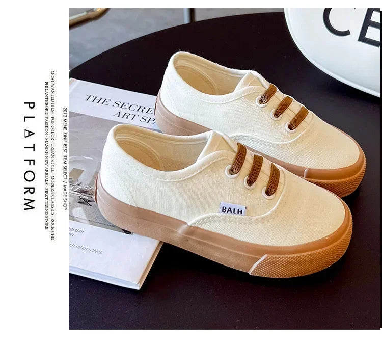 Children's Slip-On Canvas Shoes – Breathable, Solid Color Casual Footwear with Thick Soft Sole and Flat Bottom for Outdoor Wear