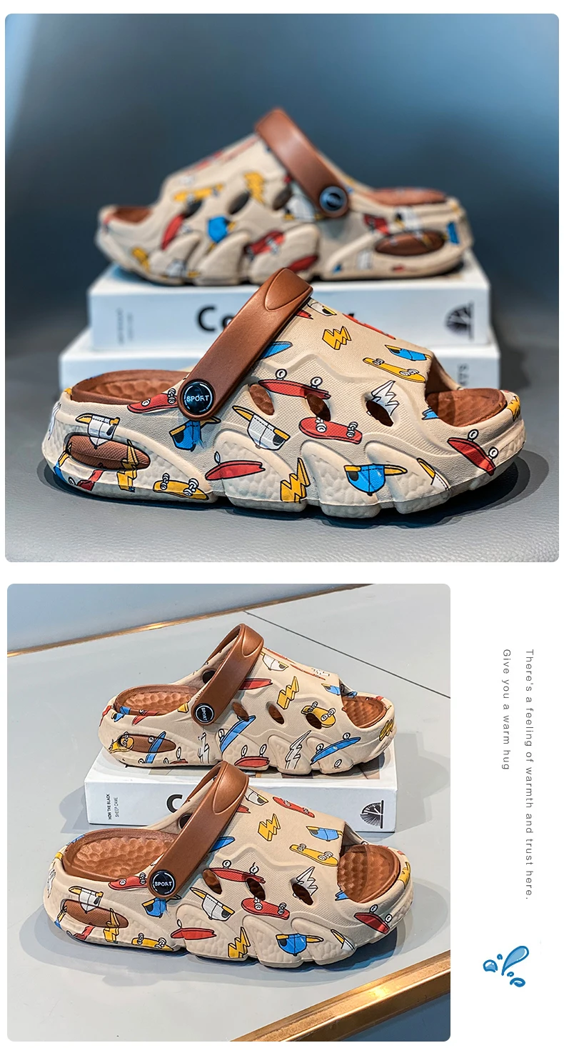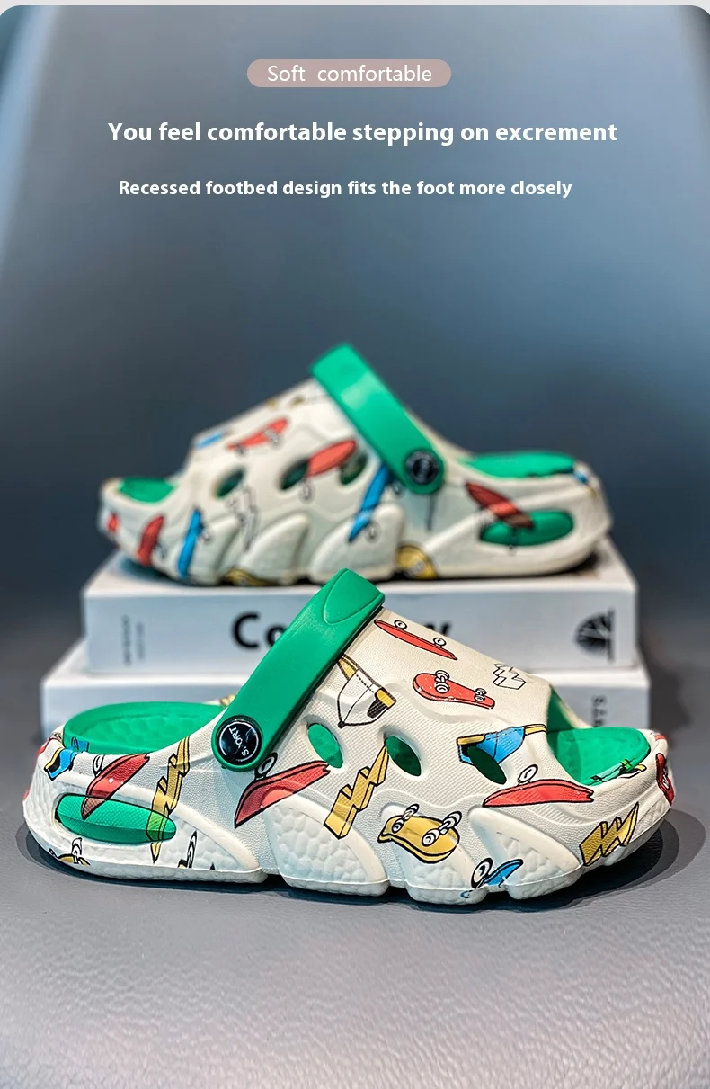 Children's slippers printed non-slip soft sole home indoor and outdoor graffiti boys and girls treasure stepping on poo sandals