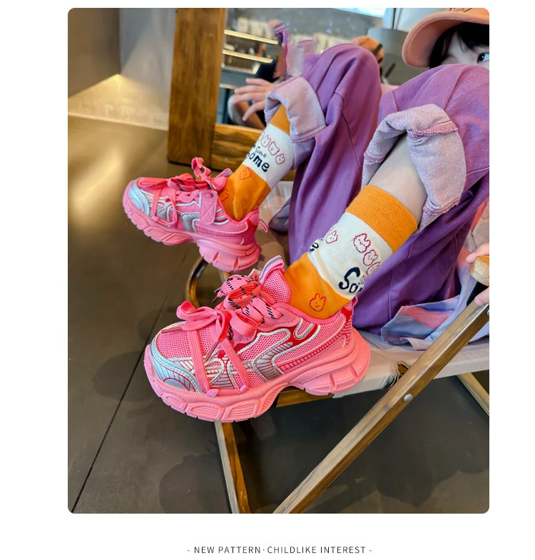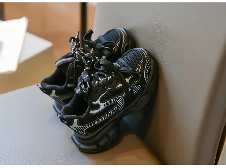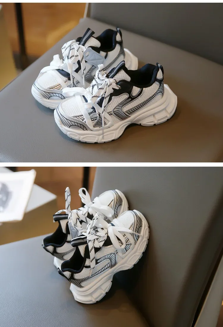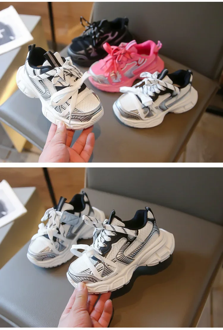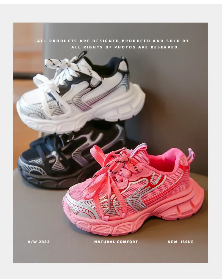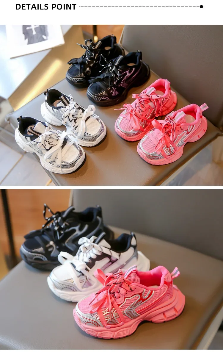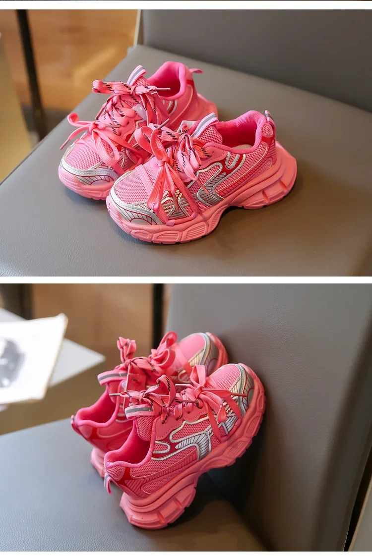 Children's Sneakers Boy Spring Autumn Mesh Girls School Causal Basketball Shoes Fashion Kids Chunky Running Sports Shoes Soft
