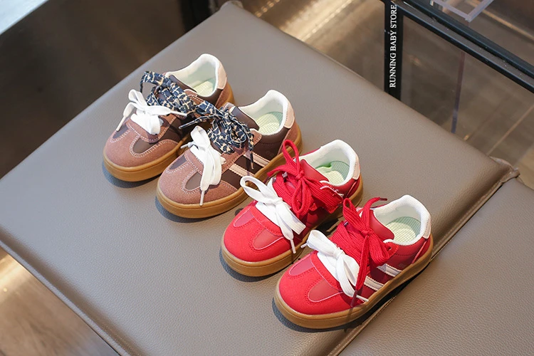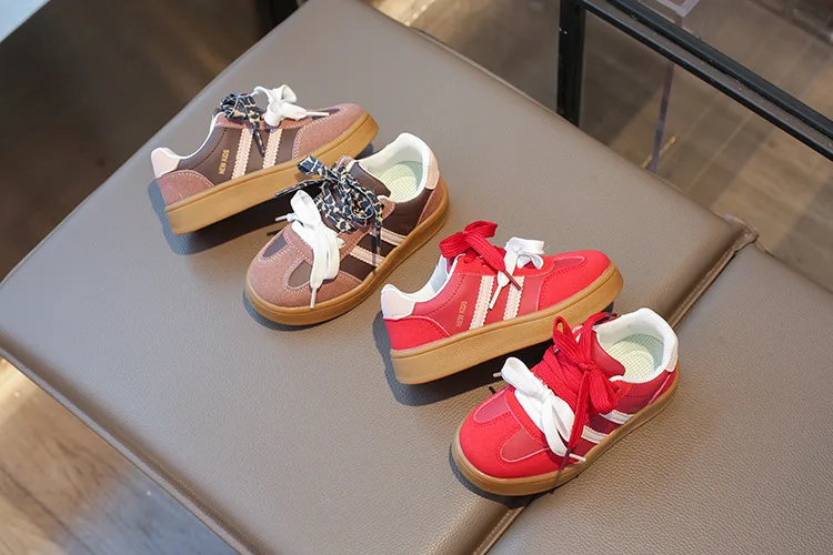 Children's Sneakers Kids Brand Design Stripes Casual Shoes Boys Girls Double Shoelace Sneakers Outdoor Walking Shoes Kids I02173