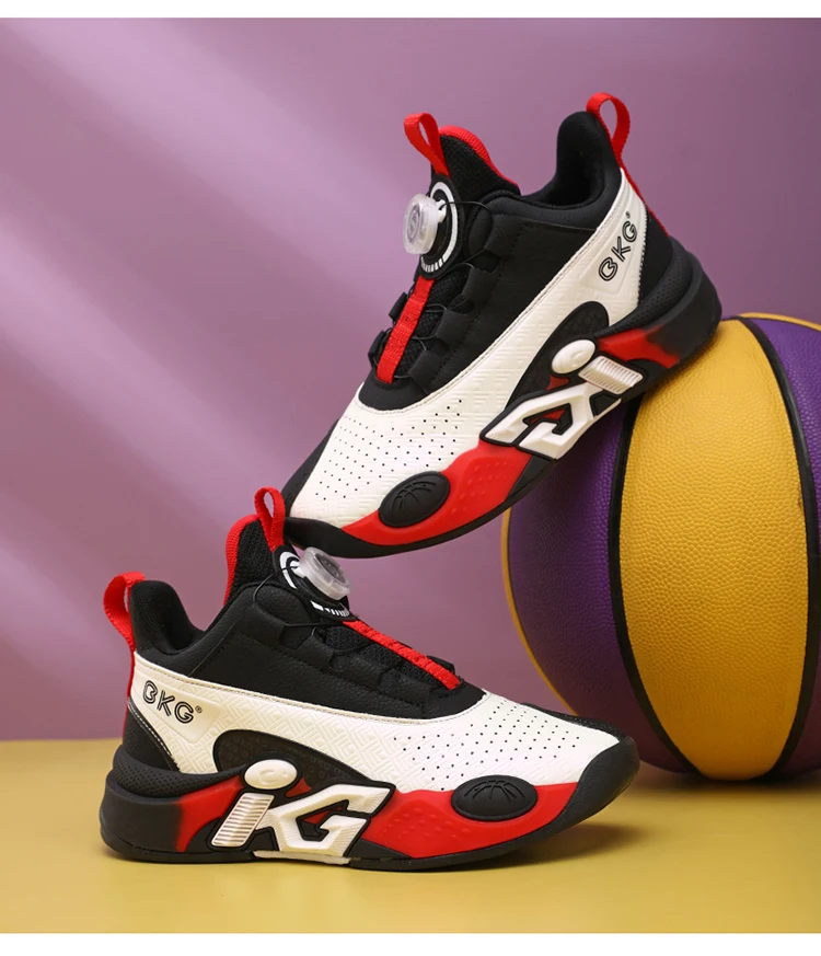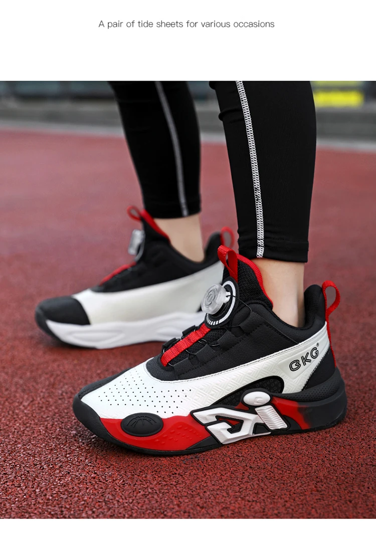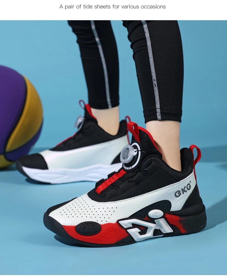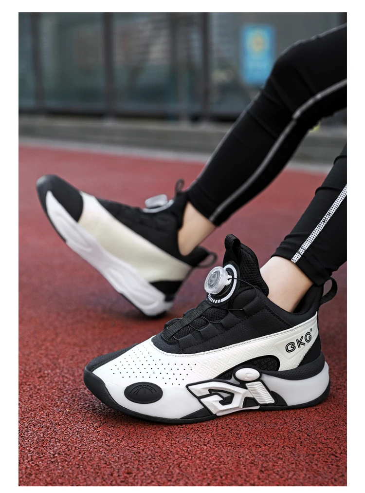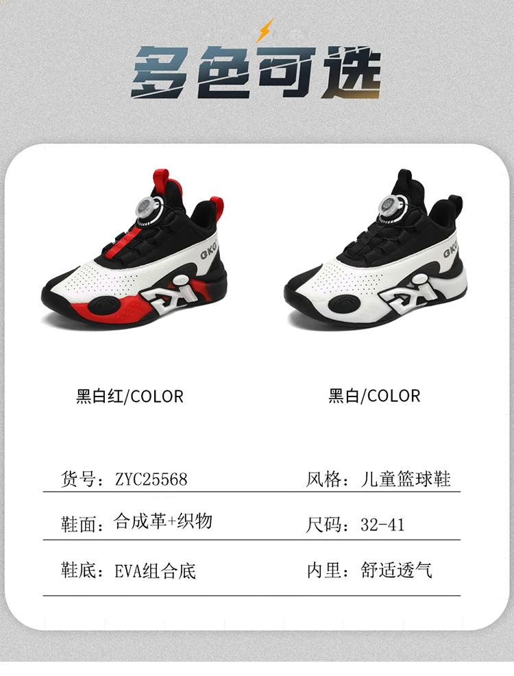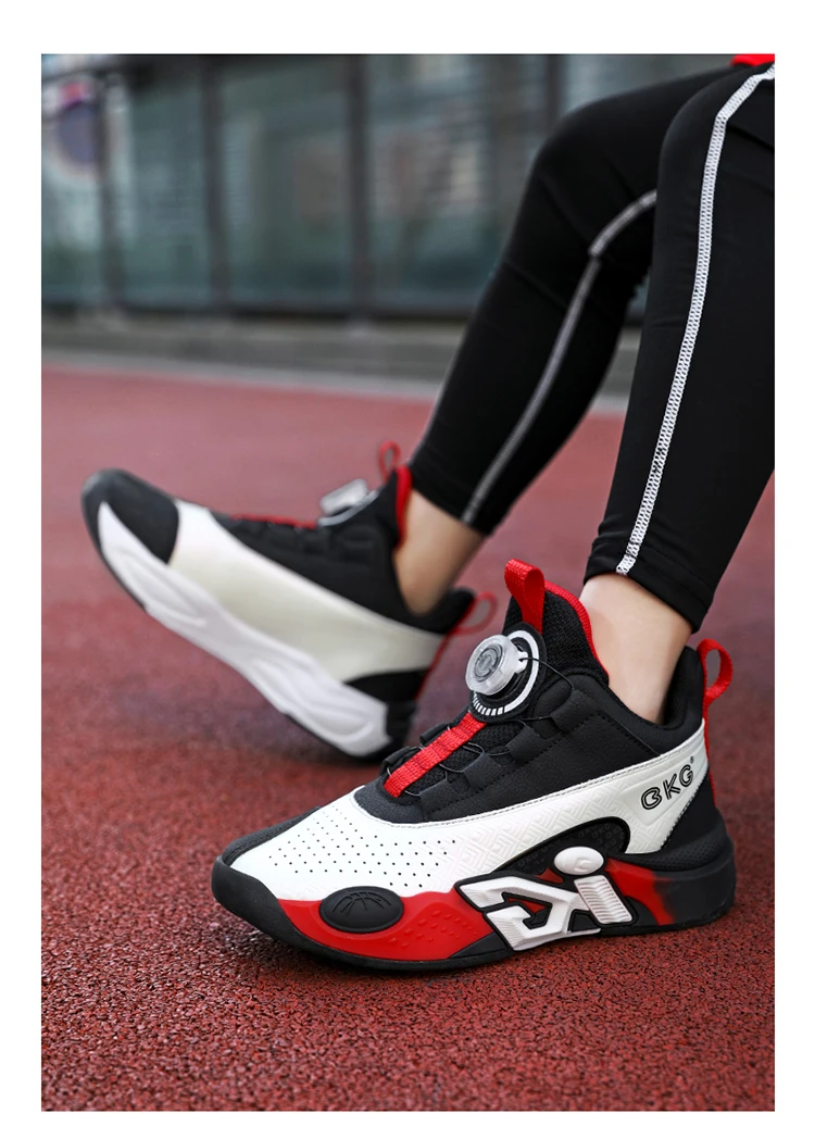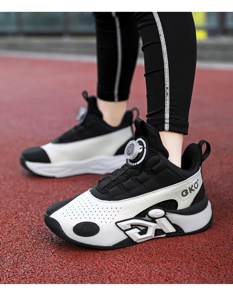 Children's Training Basketball Shoes Boys' Spring New Rotating Buckle Sneakers Youth Fashion Leather Breathable Footwear 32-41