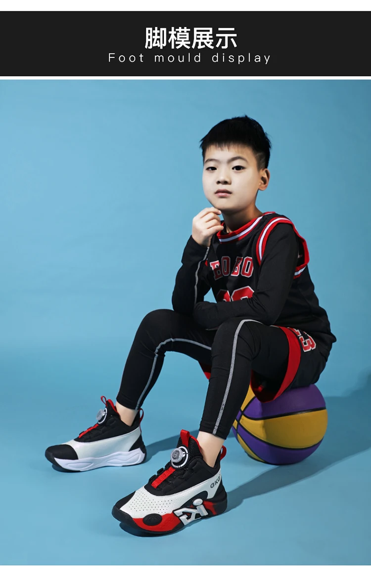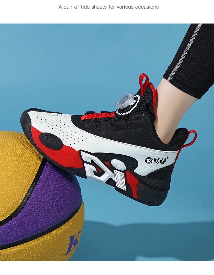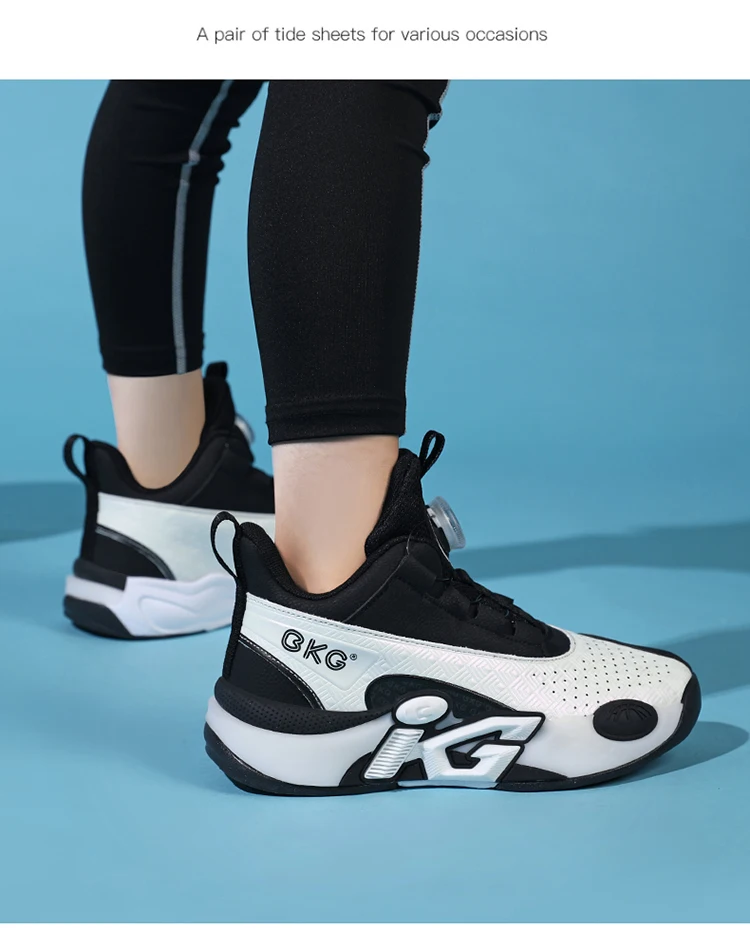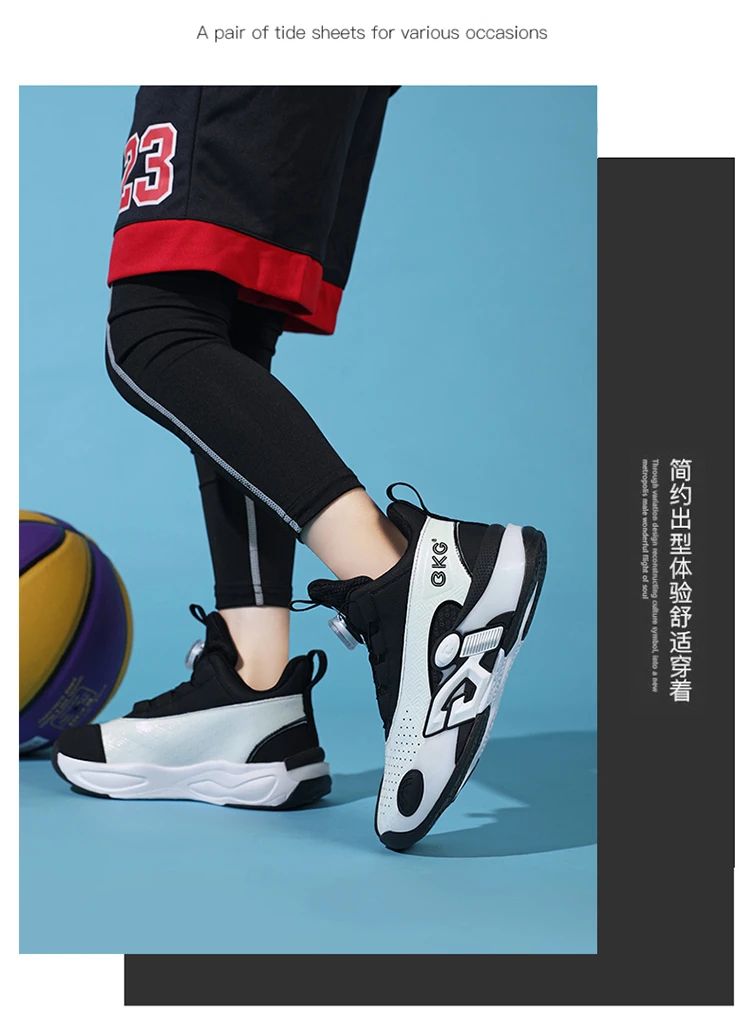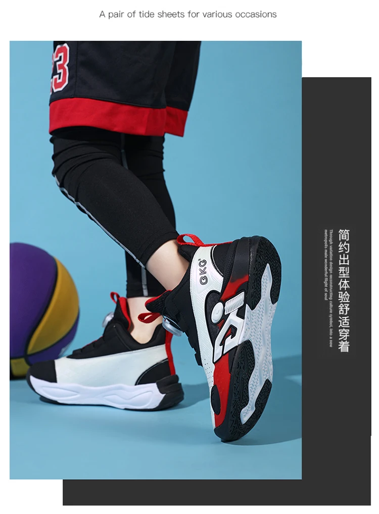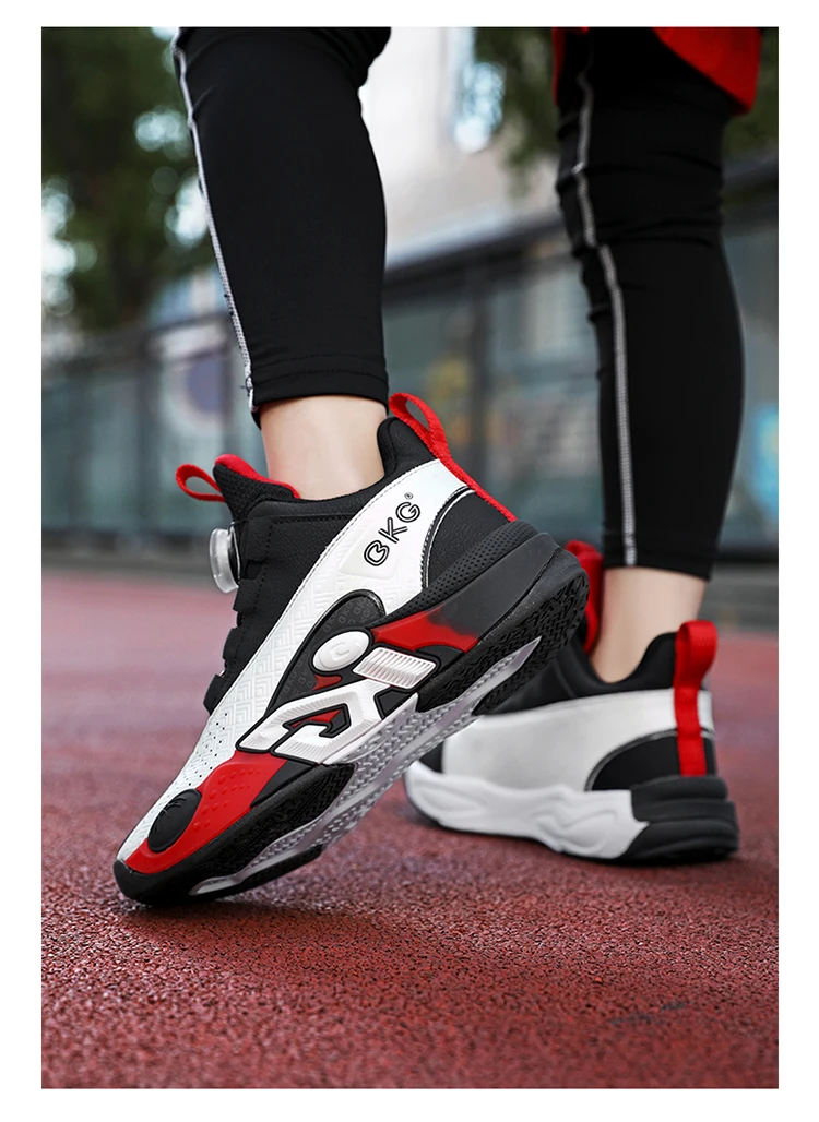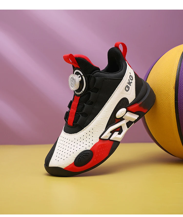 Children's Training Basketball Shoes Boys' Spring New Rotating Buckle Sneakers Youth Fashion Leather Breathable Footwear 32-41