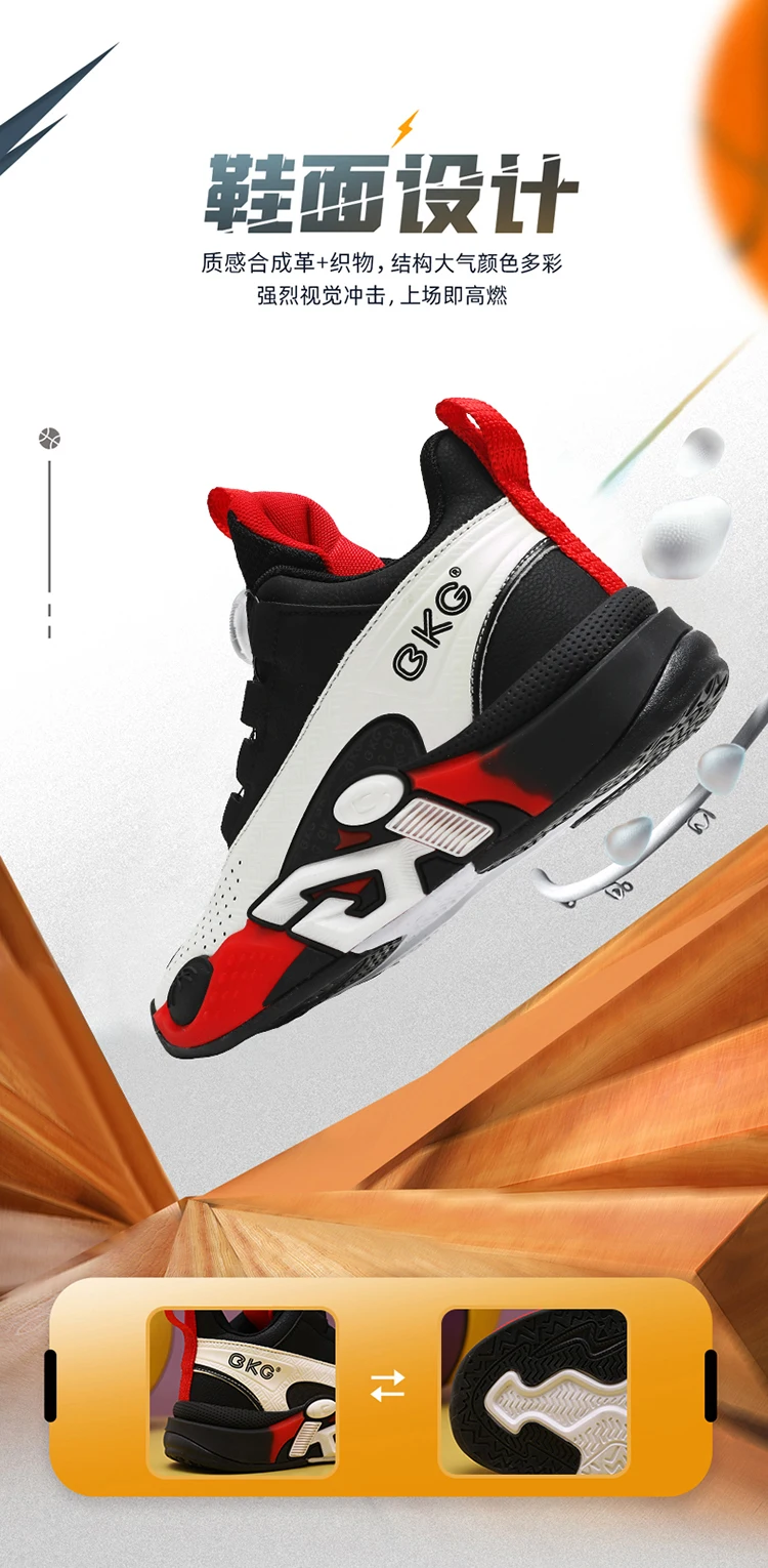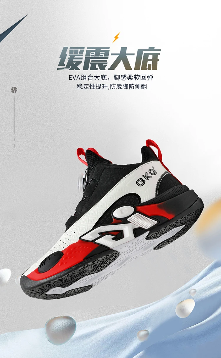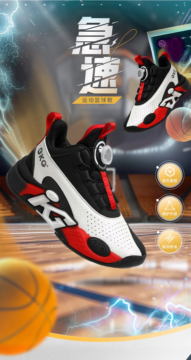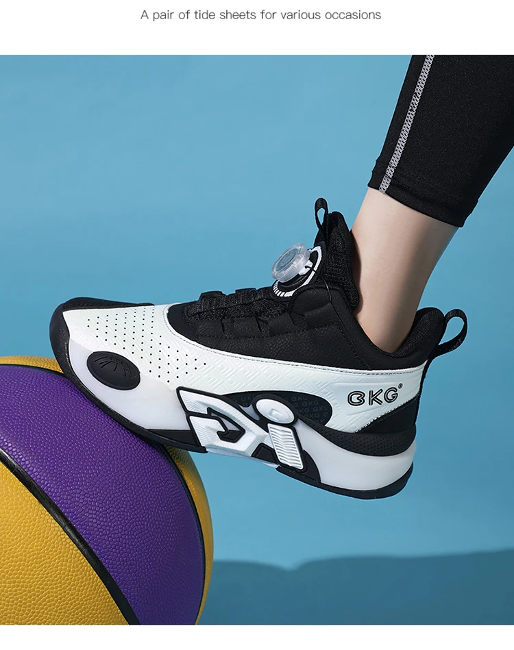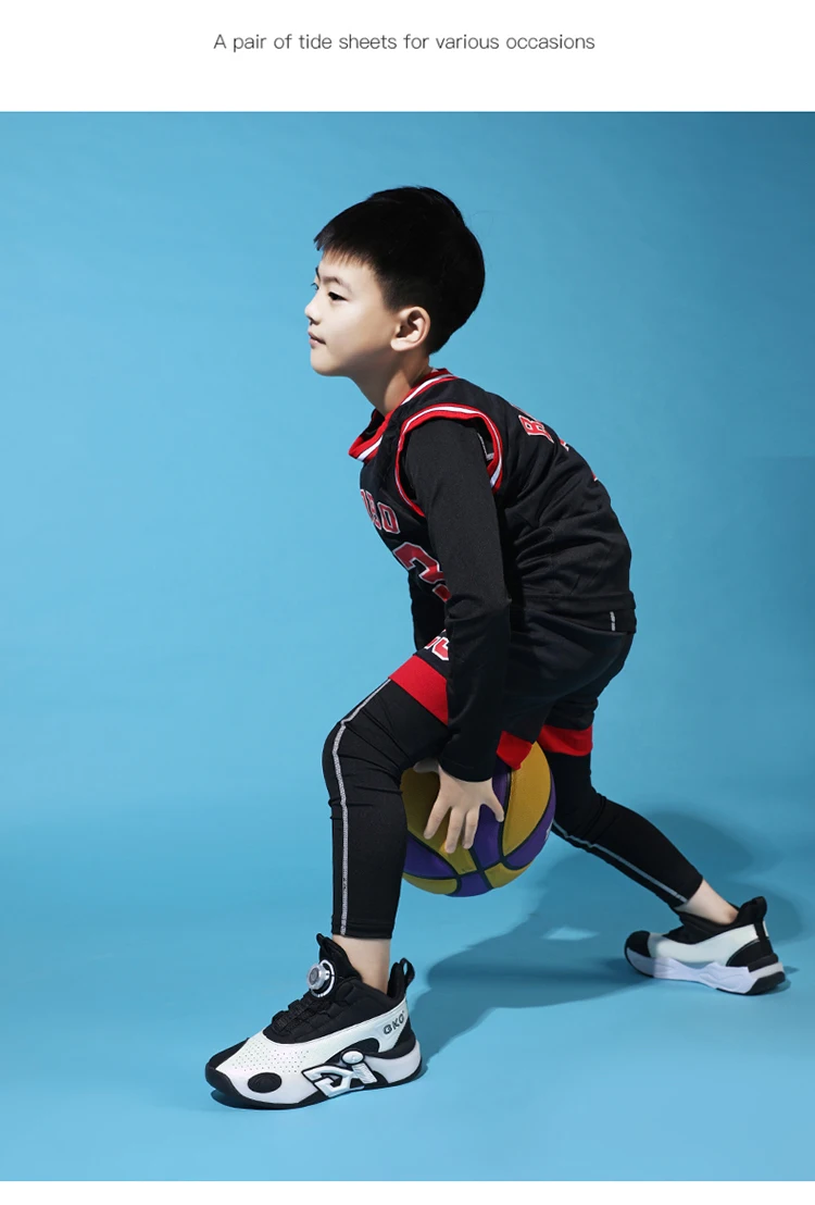 Children's Training Basketball Shoes Boys' Spring New Rotating Buckle Sneakers Youth Fashion Leather Breathable Footwear 32-41