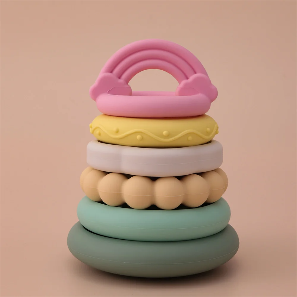 Color Kids 1Set Silicone Stacking Blocks Teether Toy BPA Free Soft Building Montessori Baby Toys 0-12M Safe Chew Toy