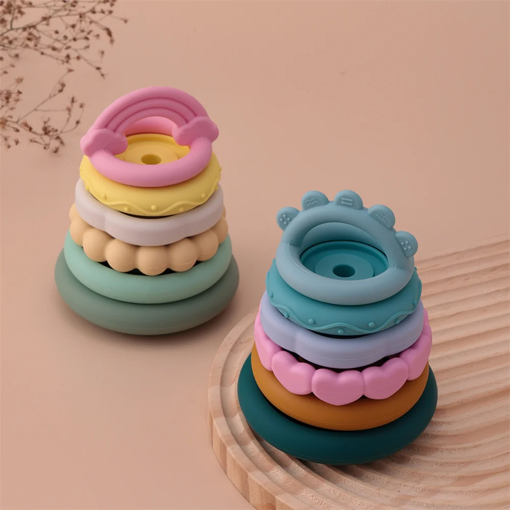 Color Kids 1Set Silicone Stacking Blocks Teether Toy BPA Free Soft Building Montessori Baby Toys 0-12M Safe Chewing Toy