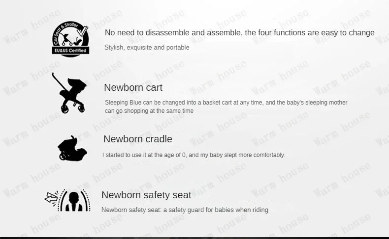 EU STOCK 4in1 baby stroller two-way Multifunctional newborn baby stroller 3in1 Foldable Basket type seat Lightweight Travel Pram
