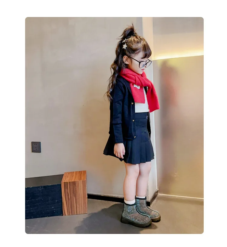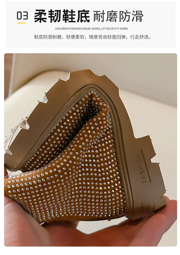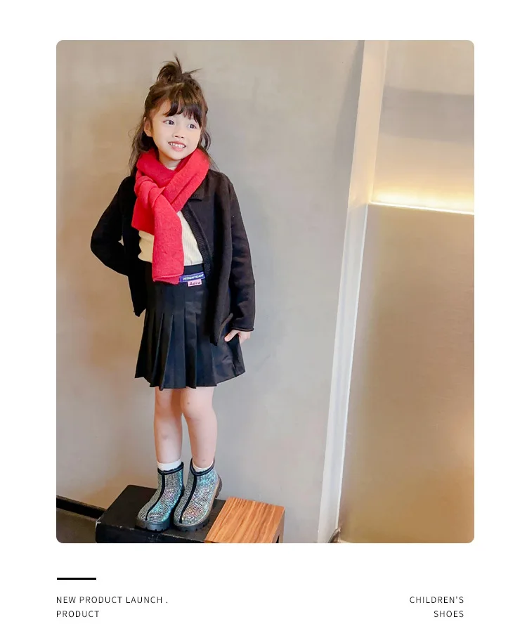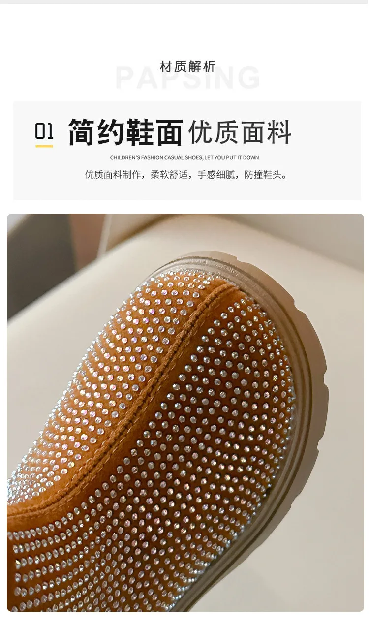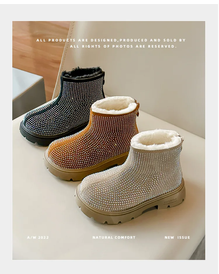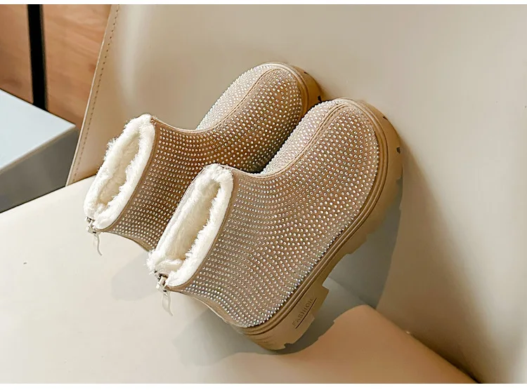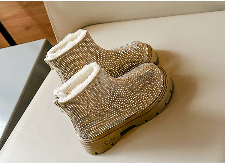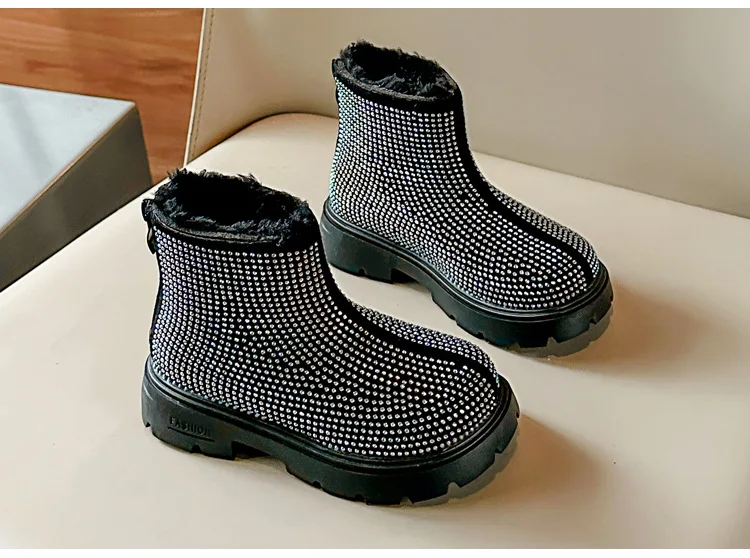 Fashion Girl Shoes New Versatile Comfort Ankle Boots Soft Sole Anti Slip Casual Rhinestone Winter Boot Warm Princess Kids Shoes