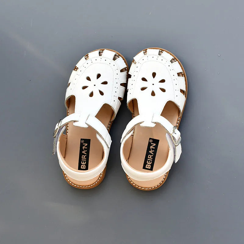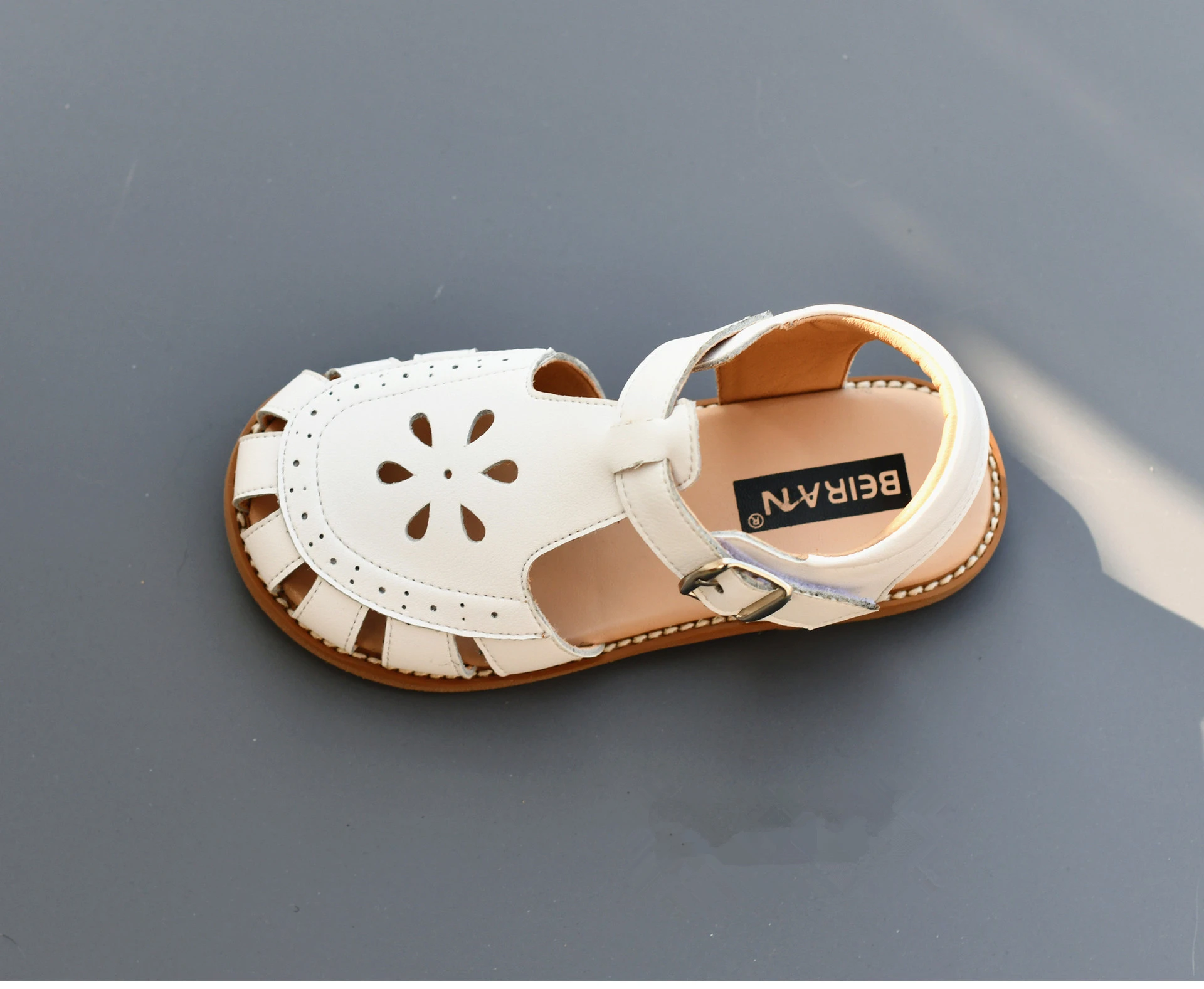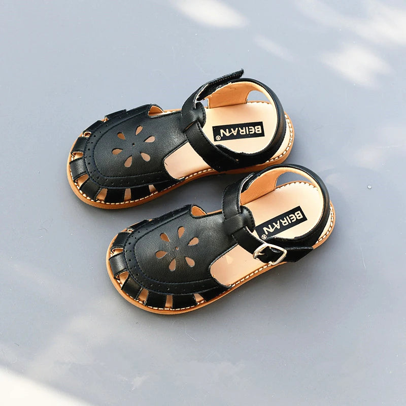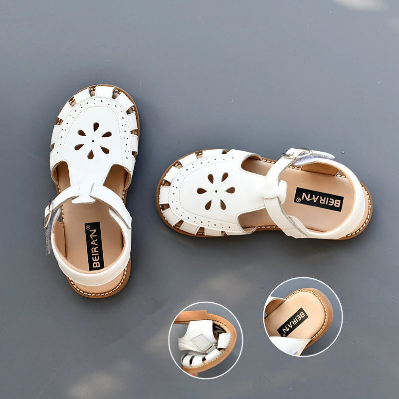 Genuine Leather Girls Fashion Sandals Close Toes Quick Dry Baby Boys Casual Sandals Summer Hollow Petals Kids Beach Shoes
