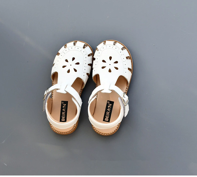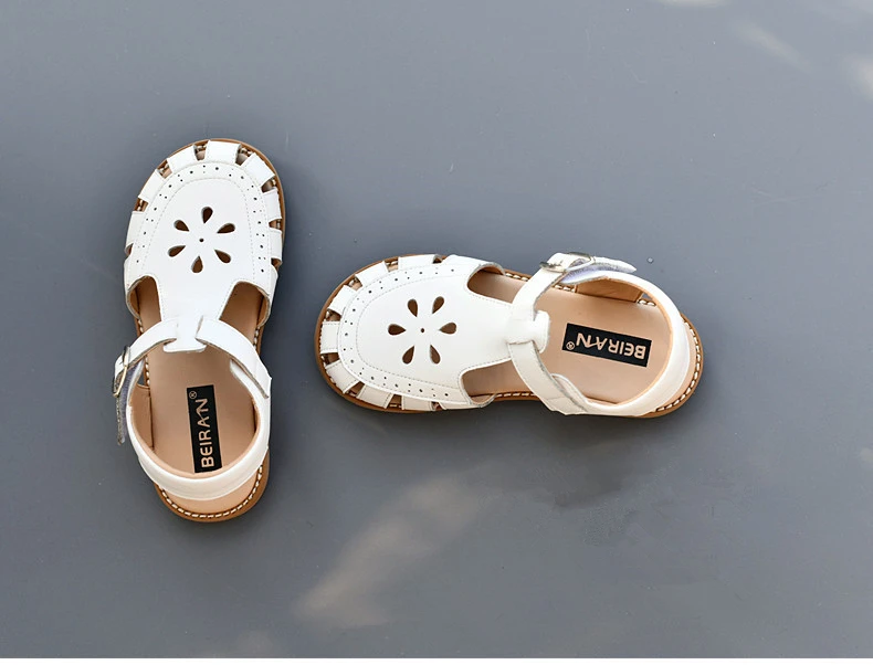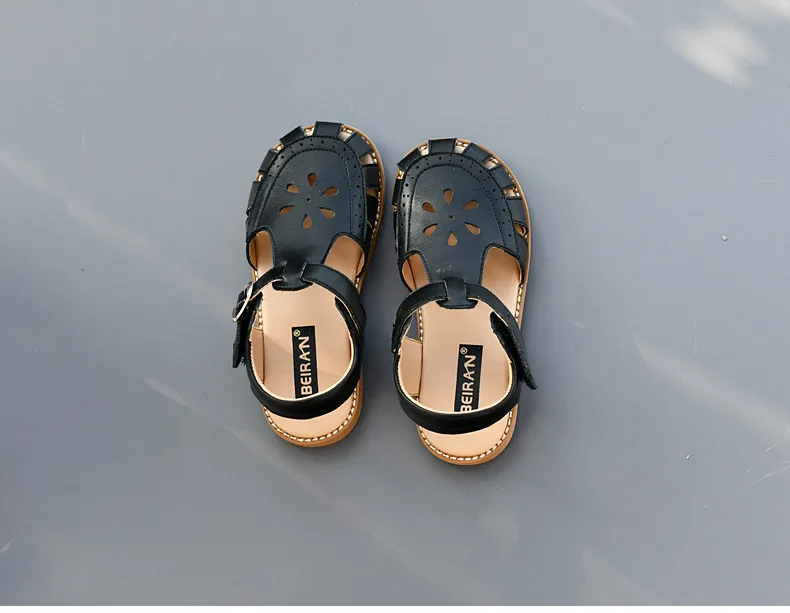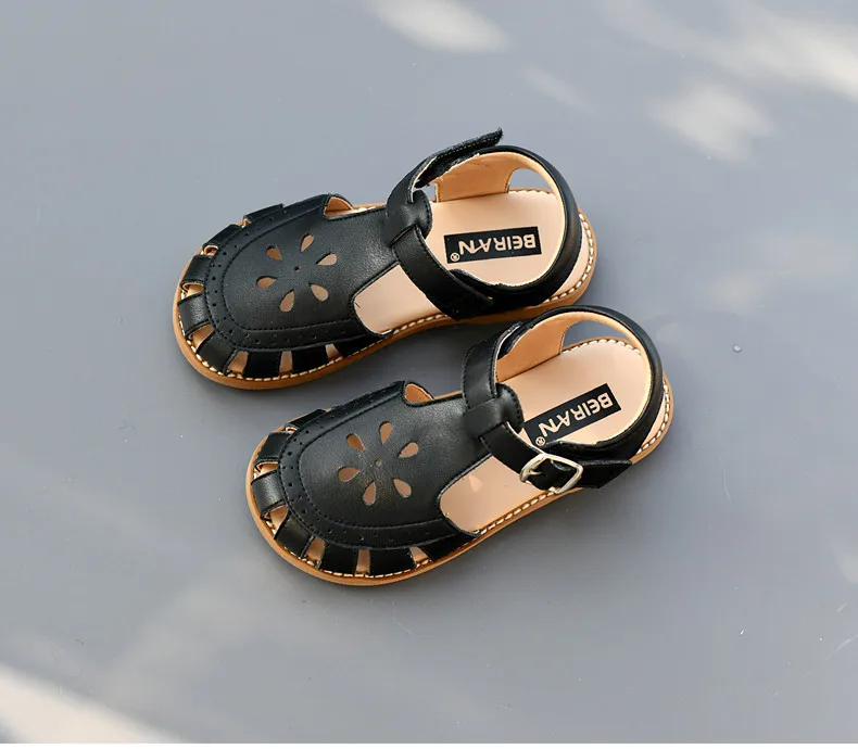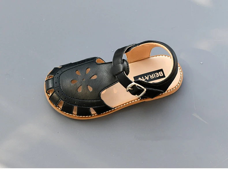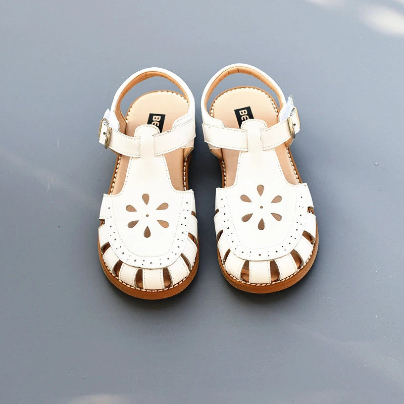 Genuine Leather Girls Fashion Sandals Close Toes Quick Dry Baby Boys Casual Sandals Summer Hollow Petals Kids Beach Shoes