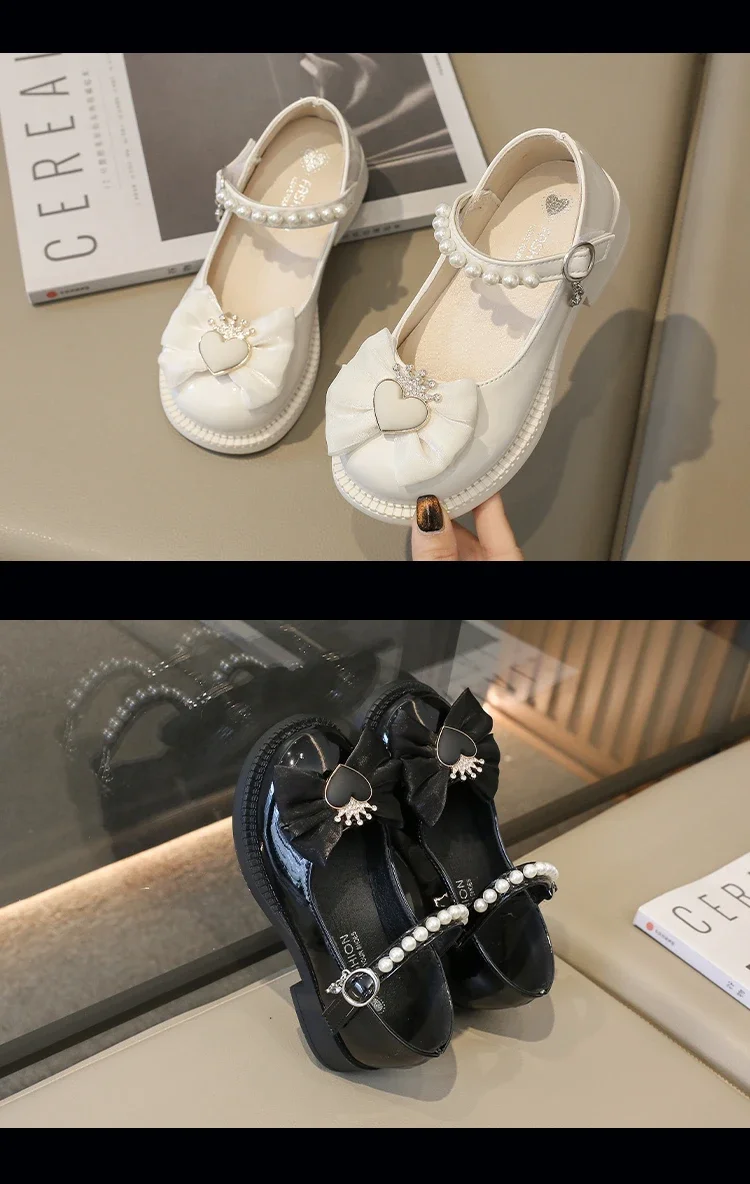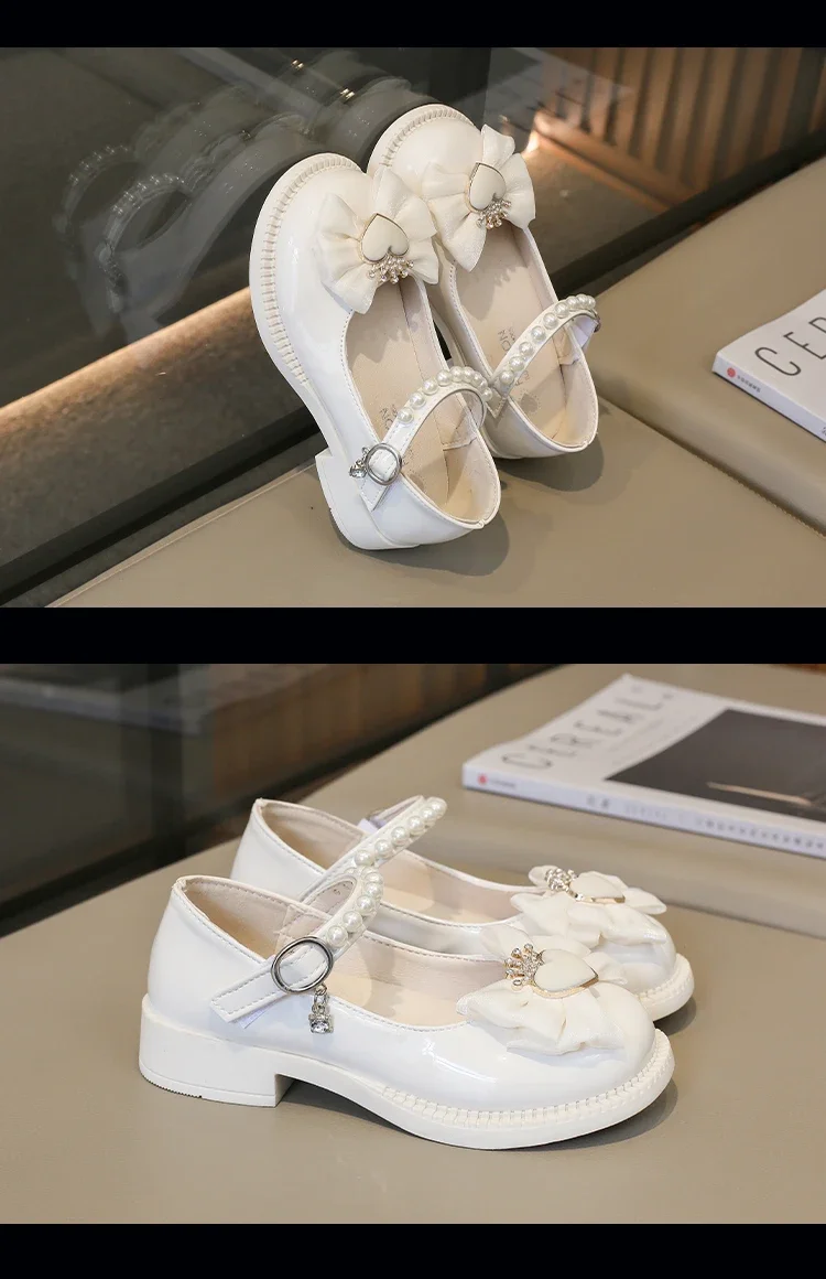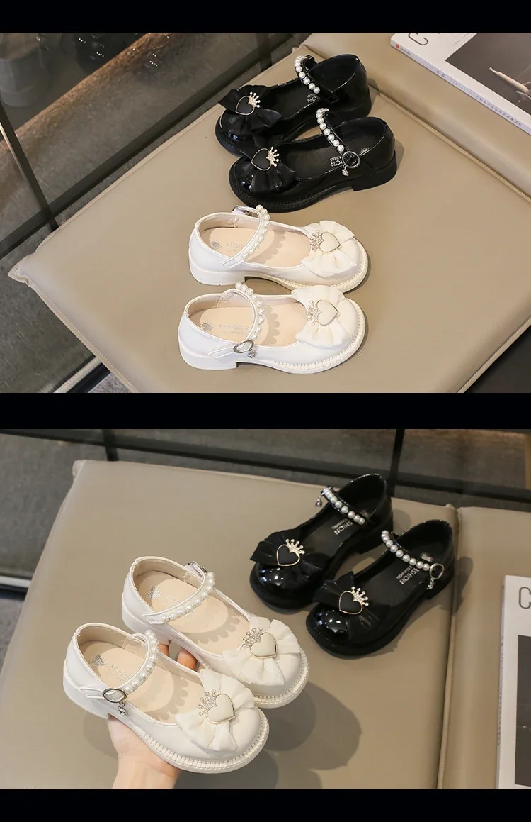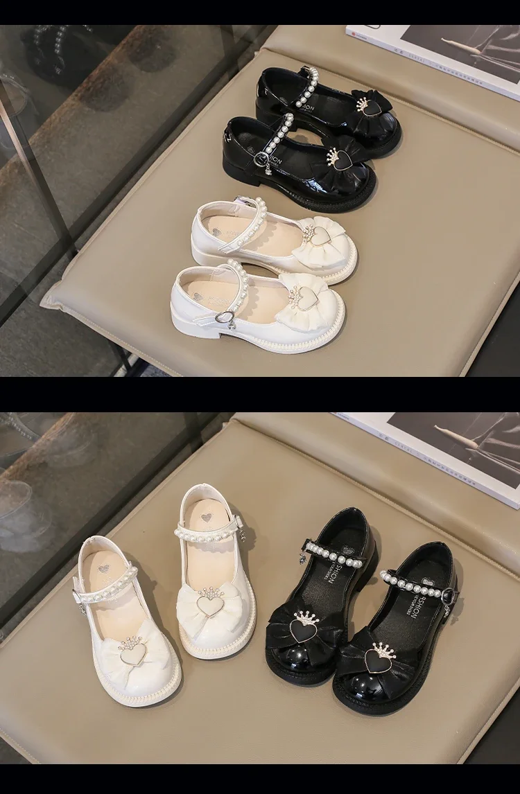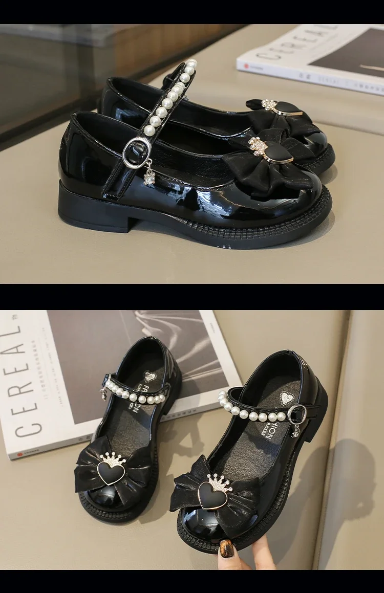 Girl Leather Shoes Mary Jane for Wedding Party Children Fashion Sweet Crown Bowknot Single Shoes Elegant Kid Princess Flat Shoes
